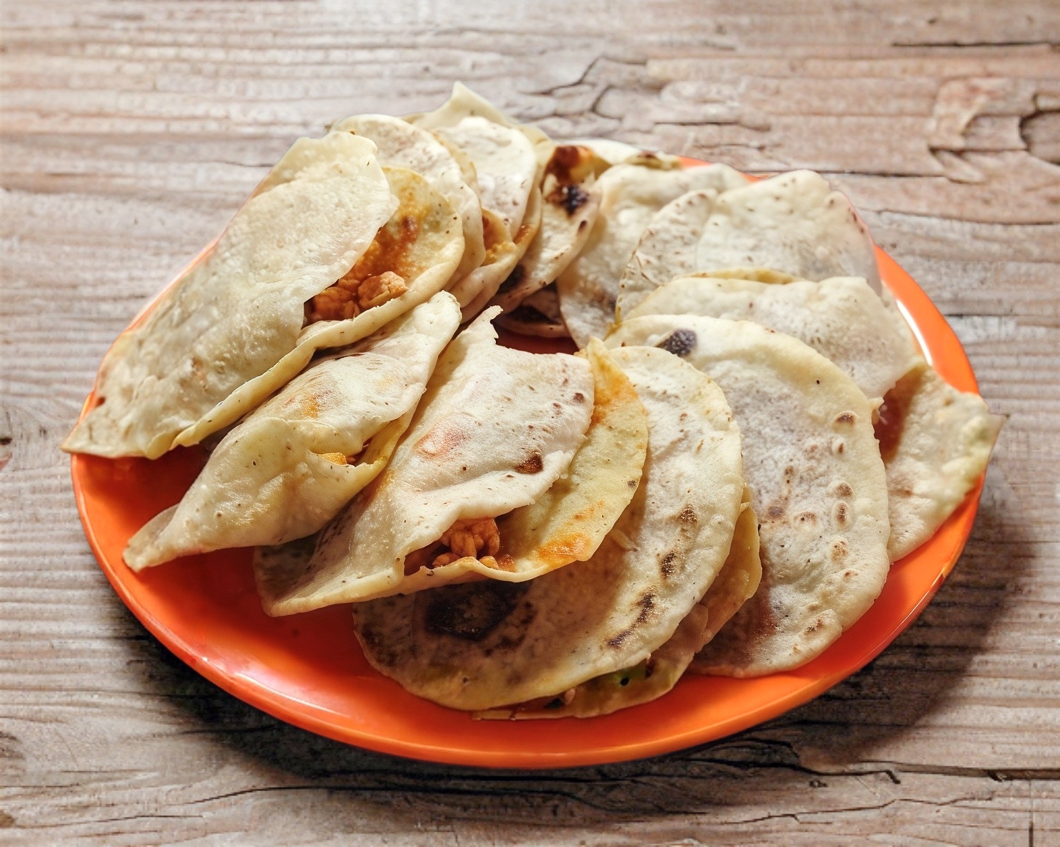 Quesadilla de maíz con queso y guisado