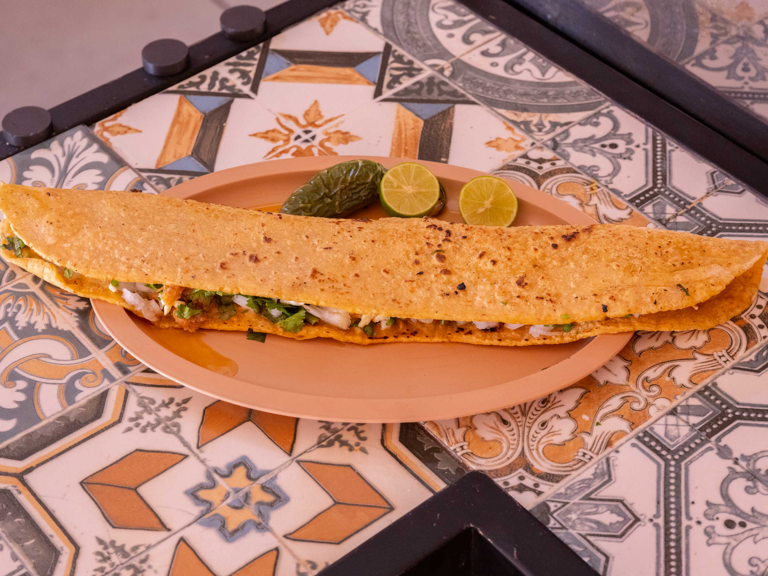Quesadilla Sencilla, Incluye: Tortilla grande doblada con queso y guisado de tu elección dentro.