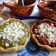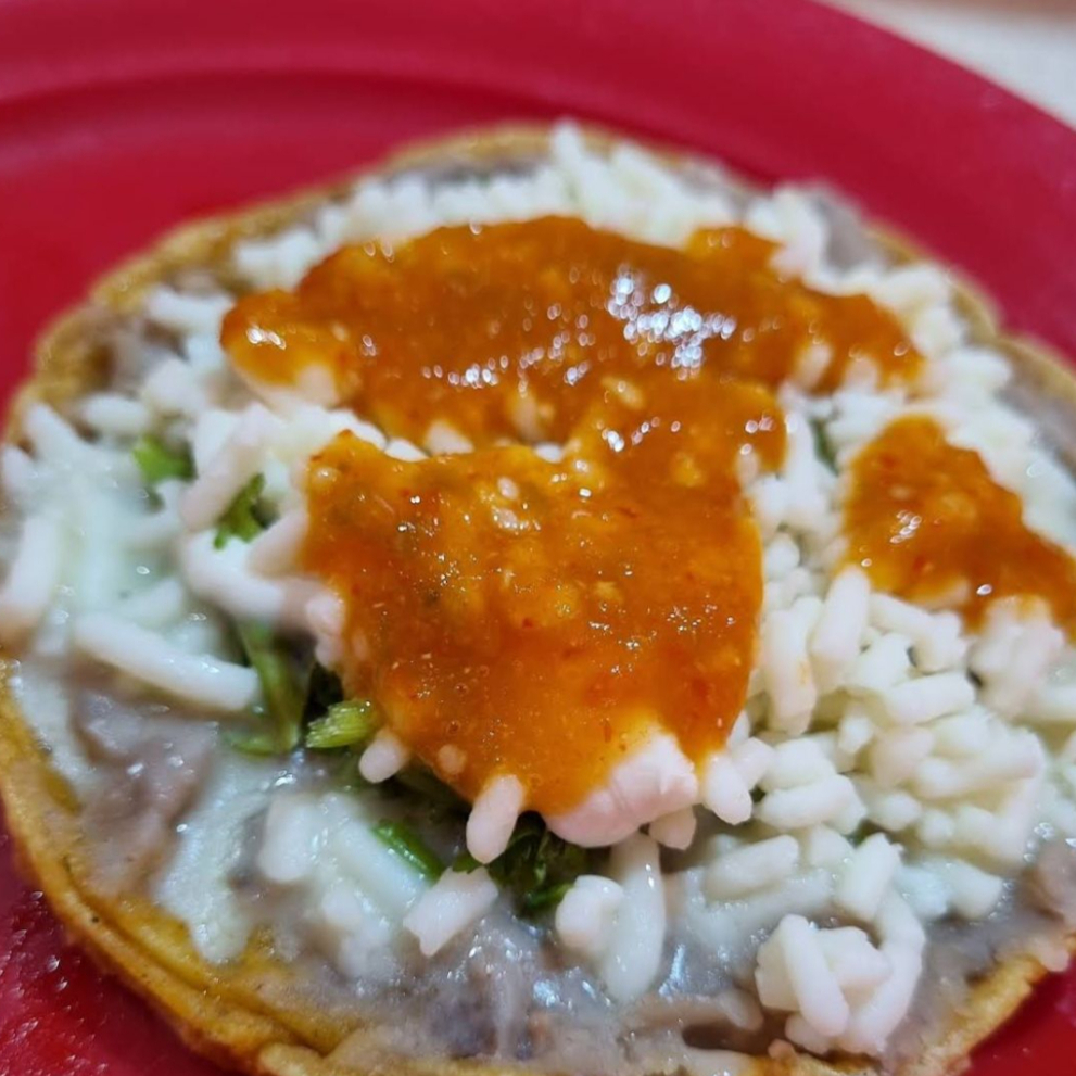 Sope con base de frijoles, crema, queso, verdura(cilantro y cebolla)