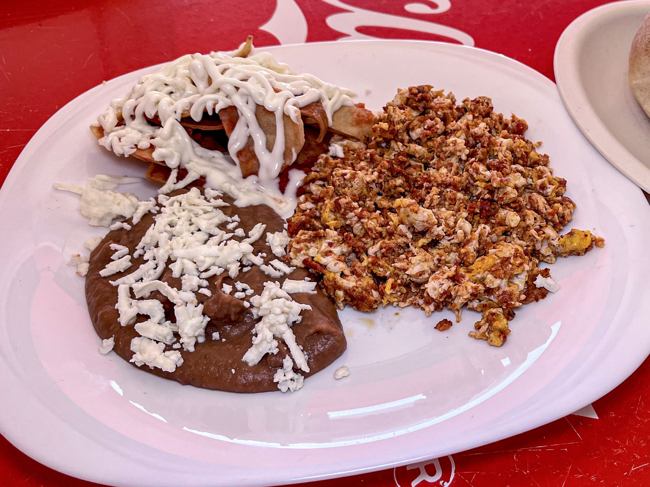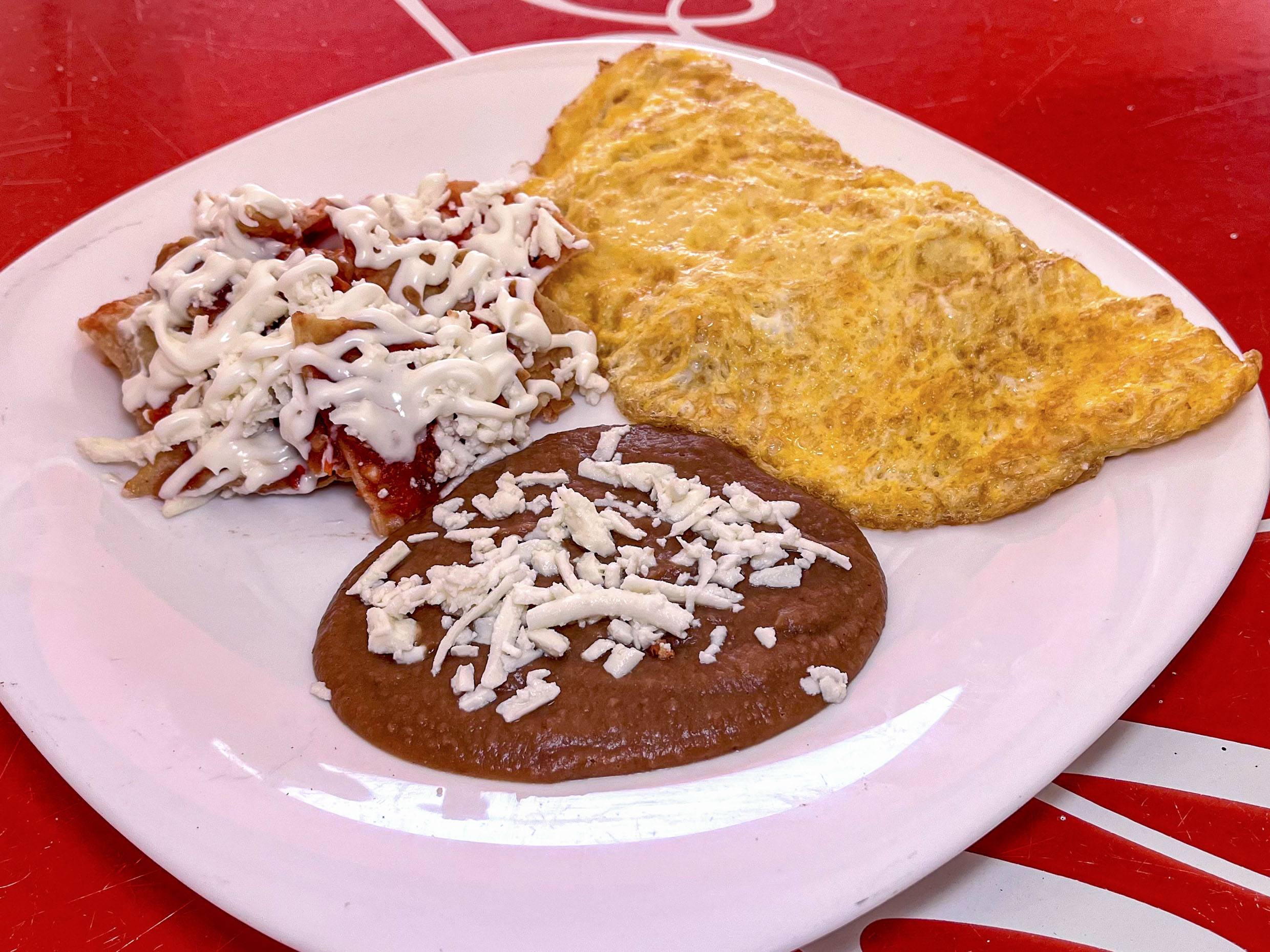 Acompañados de frijolitos, queso, chilaquiles, salsa, bolillo