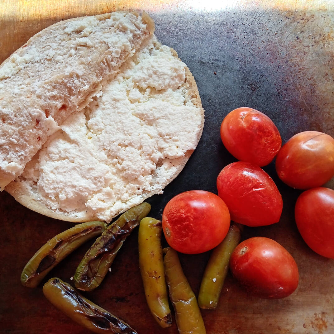 Rica gordita de maíz grande (33 cm de circunferencia), triple queso, acompañada aparte de una deliciosa salsa molcajeteada.