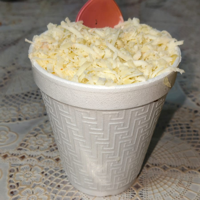 Se agrega primeramente un poco de los aderezos seleccionados en el vaso, posteriormente se agrega elote desgranado, finalmente más aderezos y queso rayado