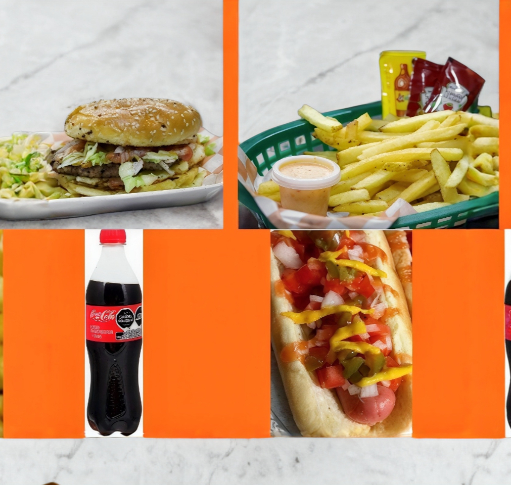 COMBO 8: HAMBURGUESA, HOT DOG, PAPAS Y REFRESCO