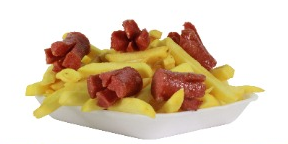 Hamburguesa hawaiana, carne de res con tocino, acompañada con queso amarillo, queso asadero, verduras, cátsup, aderezo de mayonesa y mostaza, hot dog sencillo con tocino, acompañado de jitomate, cebolla, cátsup, aderezo de mayonesa y mostaza, orden de papas a la francesa y 2 refrescos.