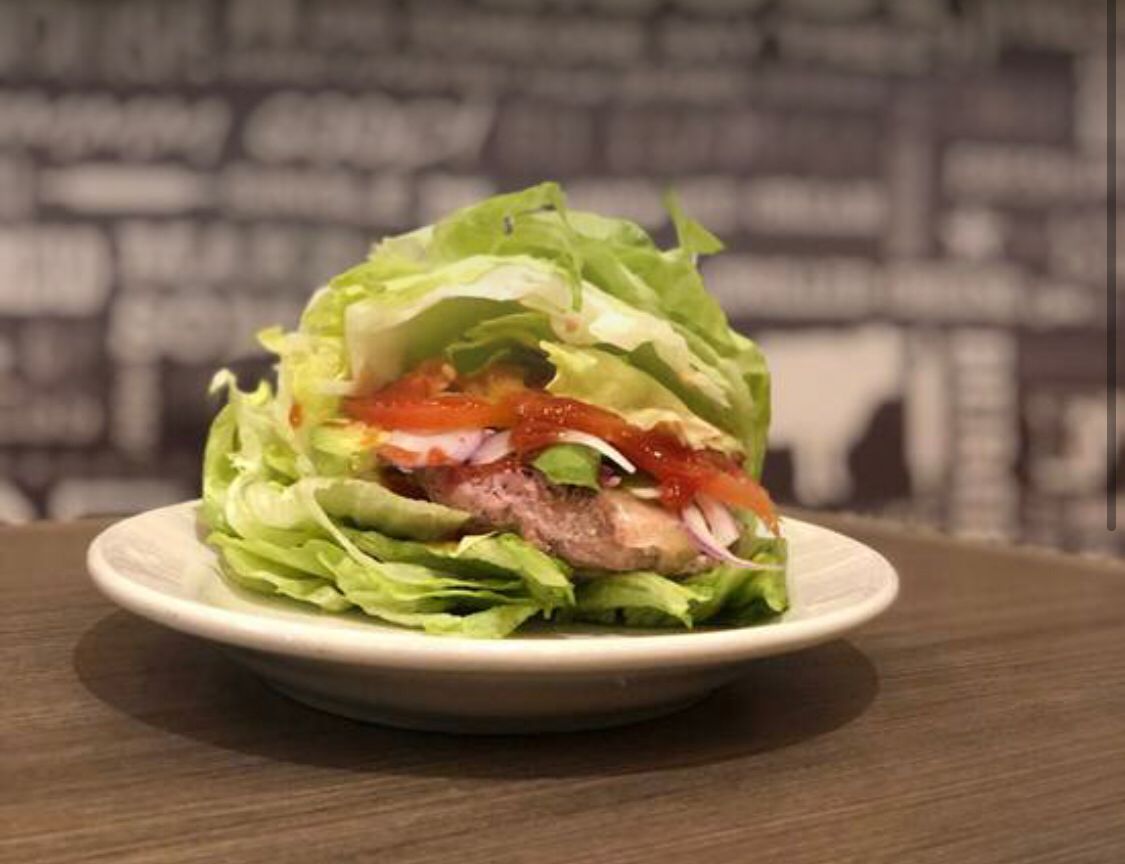 Sorprendente hamburguesa con 150gr. De medallón de atún, acompañado de jitomate, aguacate, cebolla y aderezo. Dentro de una fresca lechuga iceberg en lugar de pan, ideal para la dieta.