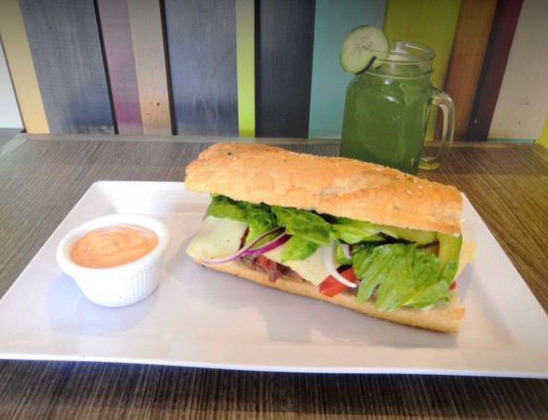 Increíble baguette muy completo de huevo con queso y verduras. Selecciona tu tipo de huevo, con jamón de pavo ó pepperoni o a la mexicana, y selección de dos verduras a tu gusto.