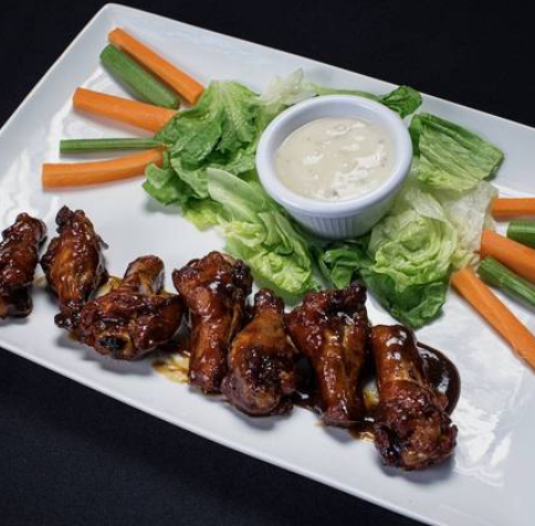 Orden personal de 7 deliciosas y jugosas alitas acompañadas con lechuga, bastones de apio y zanahoria con aderezo Ranch o Blue Cheese ( 2 onzas)