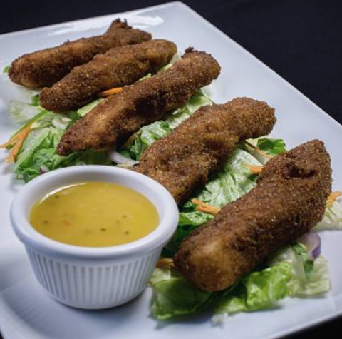 Ricas fajitas de pollo crujientes en una cama de ensalada especial y acompañadas de tu aderezo favorito.
