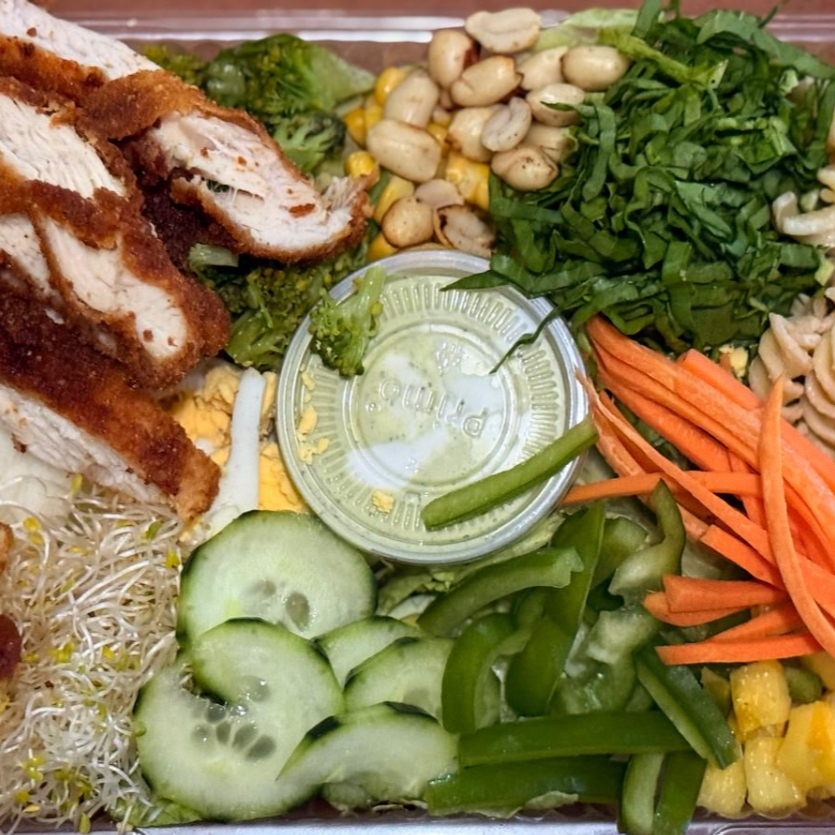 Sin limite de Toppings!, (470g) Elige tu Base, hasta 2 Proteínas (100g.), agrega todos los Topping que quieras, tenemos + de 30, 1 Aderezo, termina tu ensalada agregando 1 Crocante