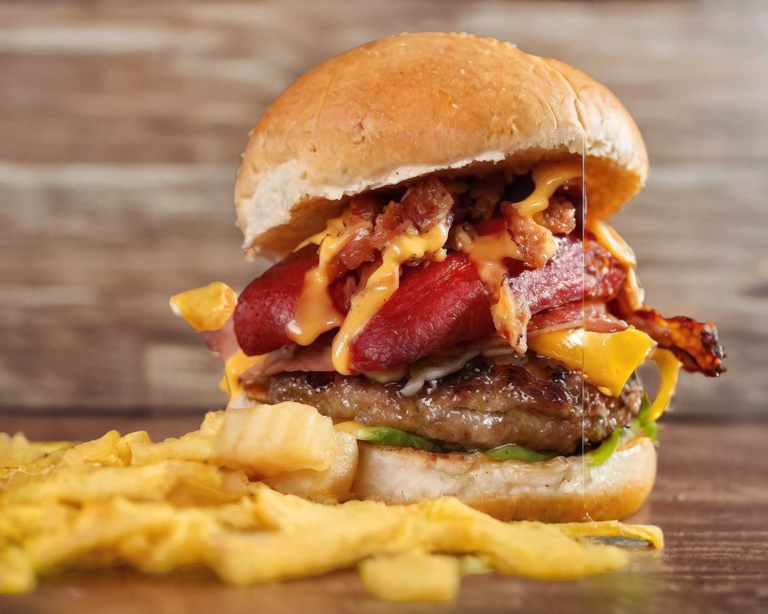 HAMBURGUESAS CON PIÑA,TOCINO Y SALCHICHA
