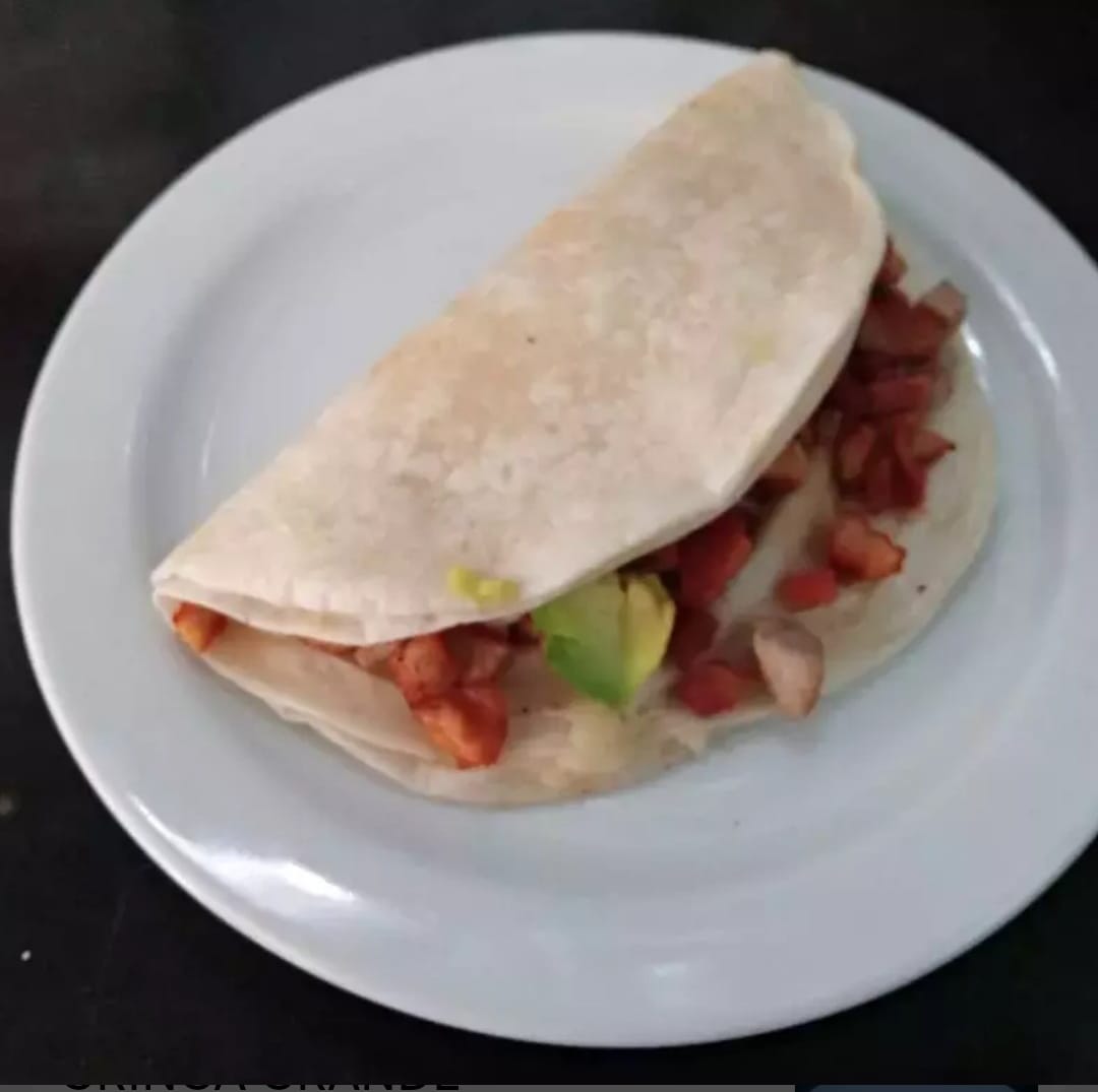 Doble tortilla de harina rellena de queso mozzarella jamón y aguacate.