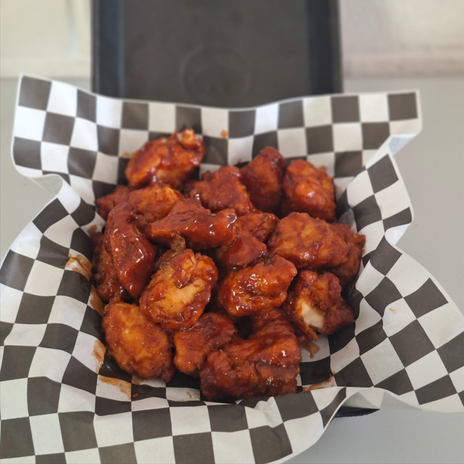 600g de pechuga de pollo seleccionada, rebanada a mano y frita a la perfección. Elige tu salsa y disfruta de una textura extra crujiente por fuera y tierna por dentro. Servidos con dip y guarnición fresca.