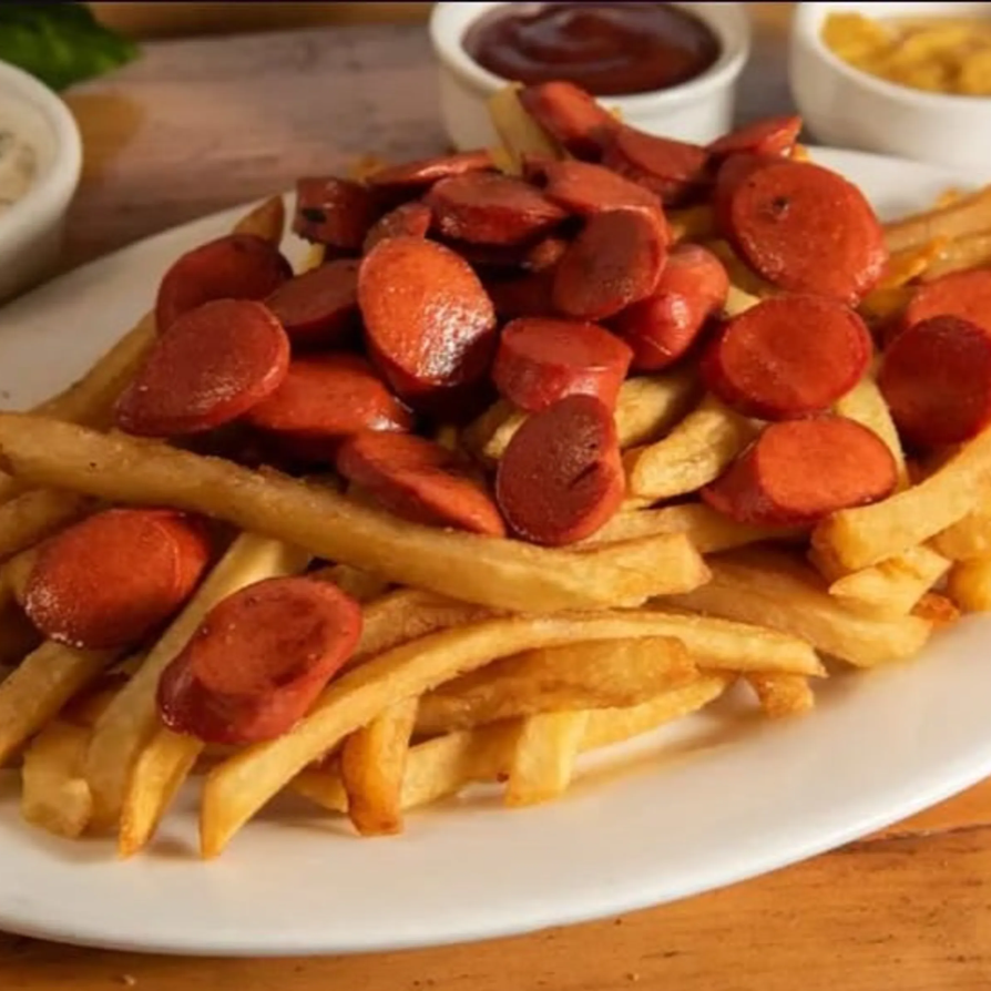 Papas fritas doraditas y rodajas de salchicha seleccionada, sazonadas al momento para un sabor irresistible. El complemento perfecto para compartir o disfrutar como plato fuerte. Calientes, frescas y muy crujientes.