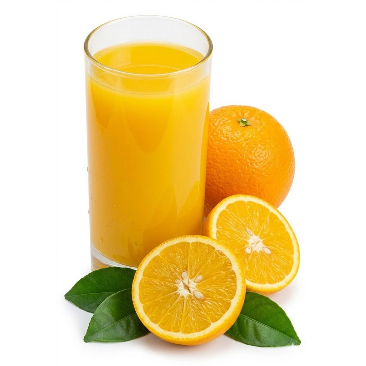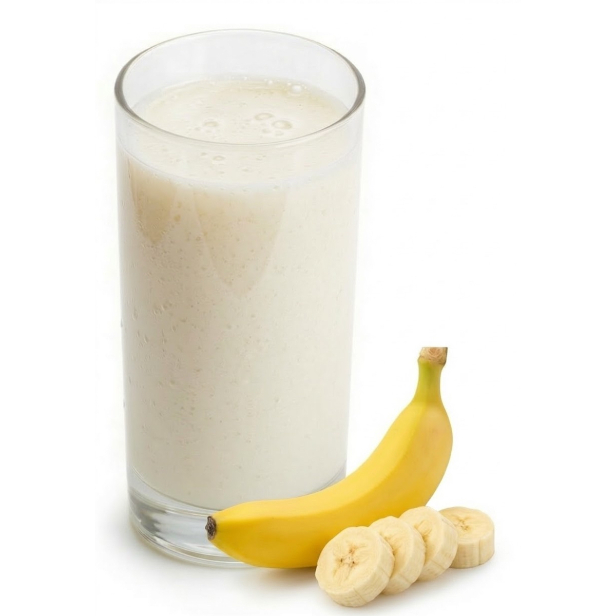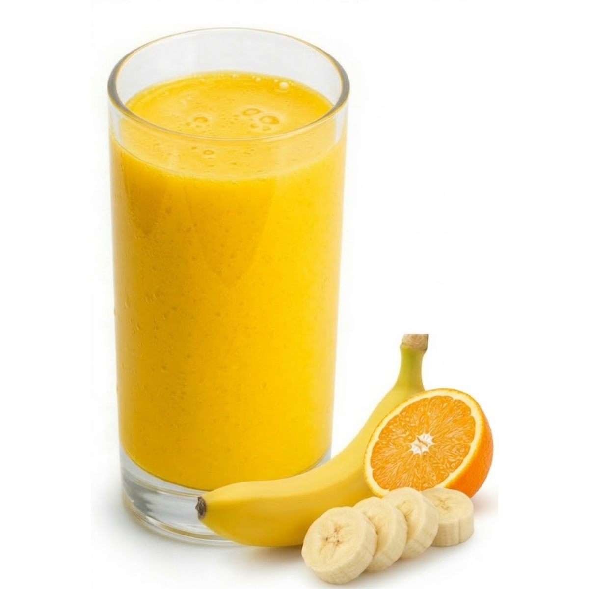 Jugo de naranja, plátano, vainilla, azúcar y huevo