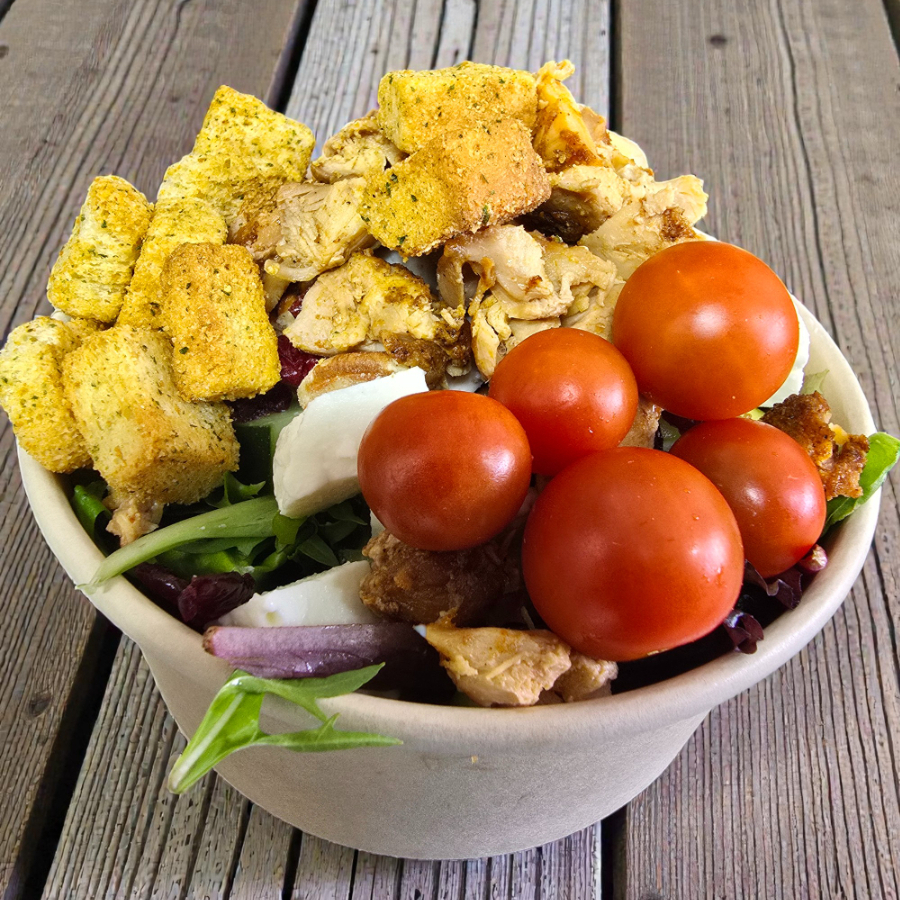 La clasica ensalada basica acompañada con una porcion de pollo y preparada a tu gusto