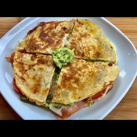 2 tortilla de harina preparada con jamón, queso amarillo, queso asadero, lechuga, aguacate y chile en vinagre