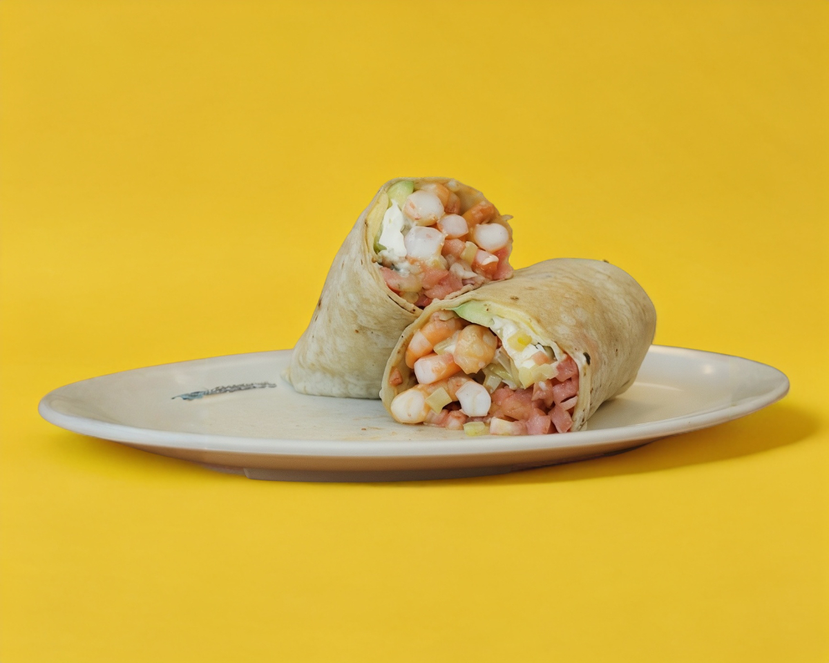 Tortilla de harina sobaquera con Camarón sazonado a la plancha, extra queso, aguacate, tomate, aderezo chipotle, chile güerito tatemado, tocino y Philadelphia.