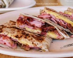 Tortilla de harina sobaquera con Queso manchego y jamón.