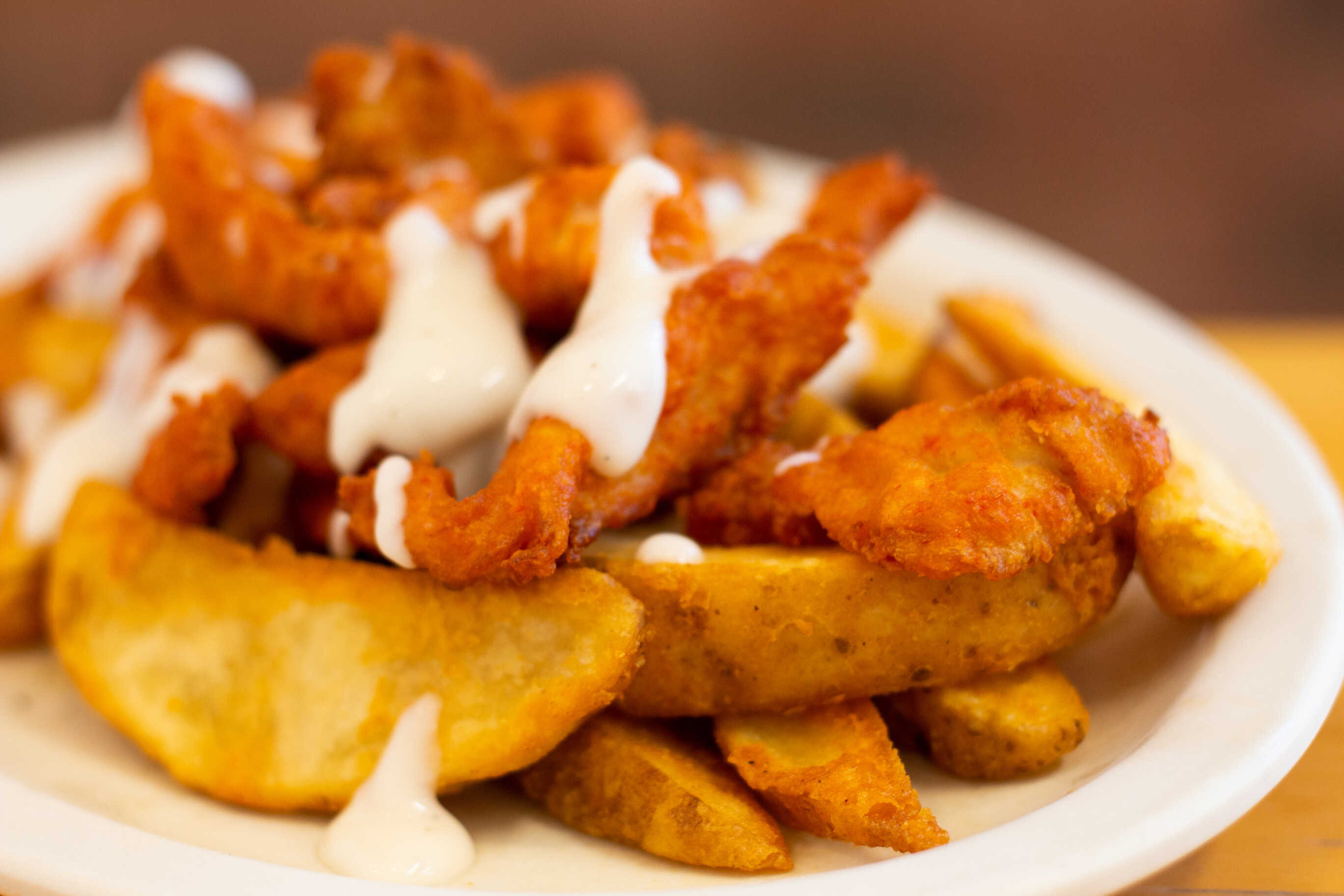 300 g. de papas gajo, 160 g. de boneless, salsa de quesos acompañadas de aderezo ranch.