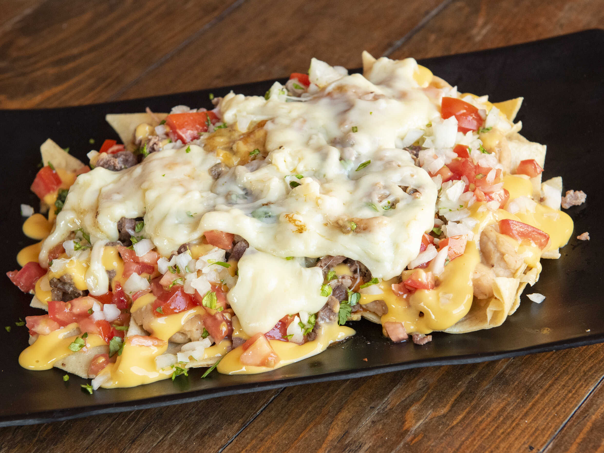 Carne a la plancha, queso y tocino.