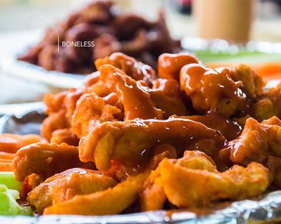 300grs Pechugas de pollo recién empanizadas, bañadas en salsa a elegir, acompañados de aderezo ranch, apio y zanahoria.