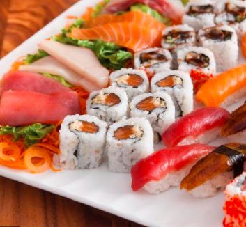 PF: arroz blanco, salmón, atún, camarón y aguacate. PD: alva, pepino y tampico