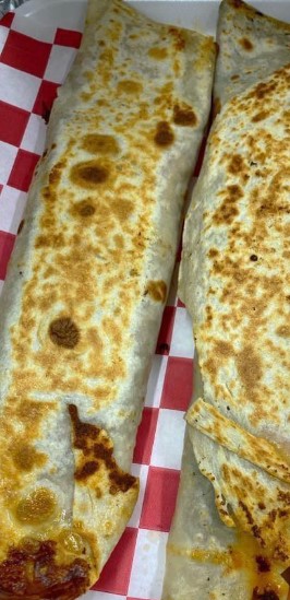 Burrazo de 30 centímetros preparado con frijoles y queso acompañado de arrachera.