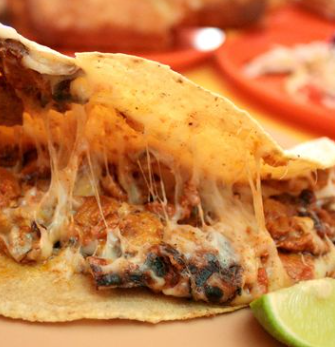 Bistec y champiñones acompañado de queso asadero, envuelto en tortilla de harina y dorado en manteca vegetal.
