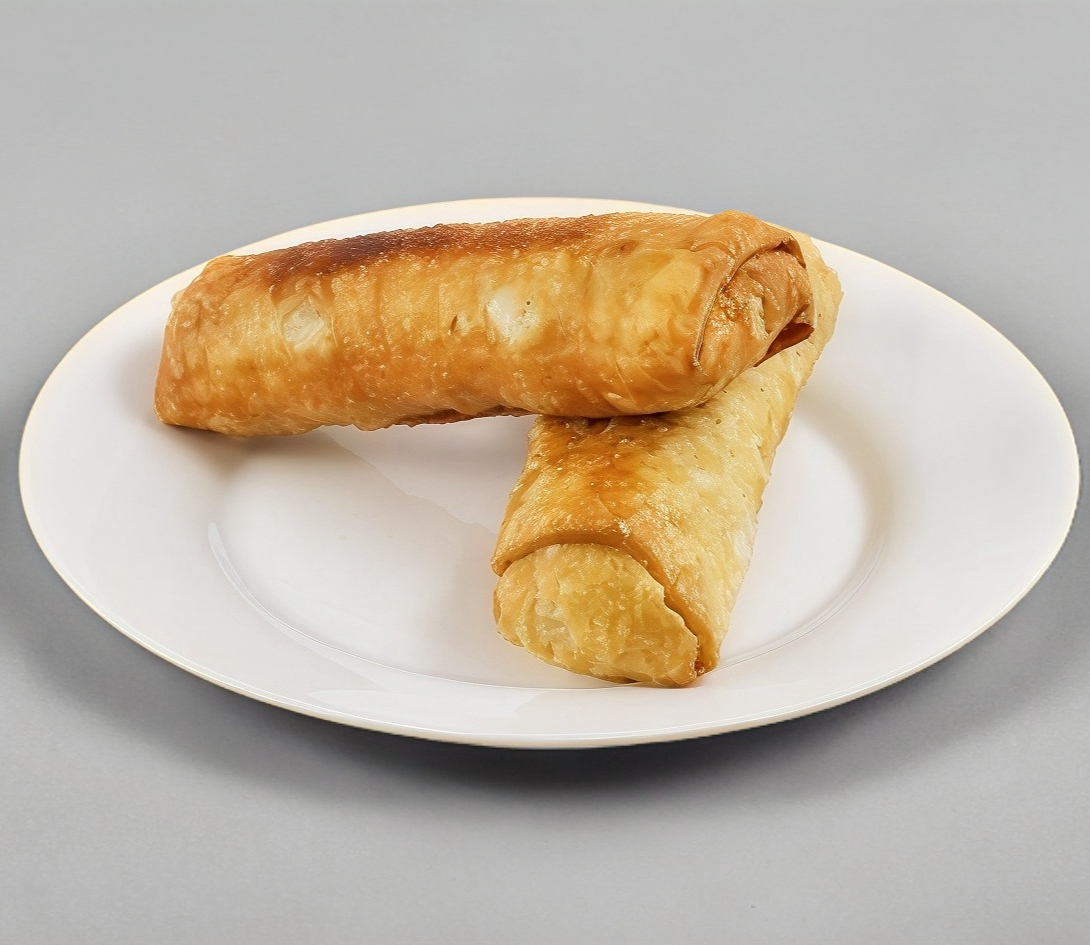 Rajas poblanas guisadas con elote, crema y queso acompañado de queso asadero, envuelto en tortilla de harina y dorado en manteca vegetal.