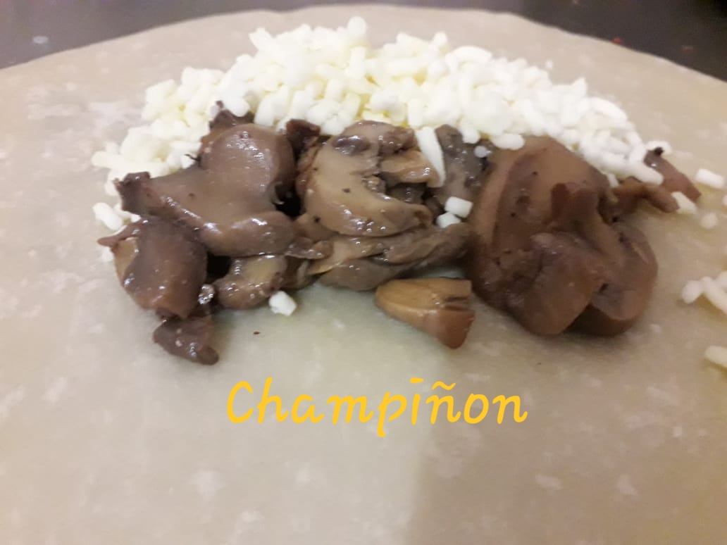 Suculentos champiñones aderezados acompañado de queso asadero, envuelto en tortilla de harina y dorado en manteca vegetal.