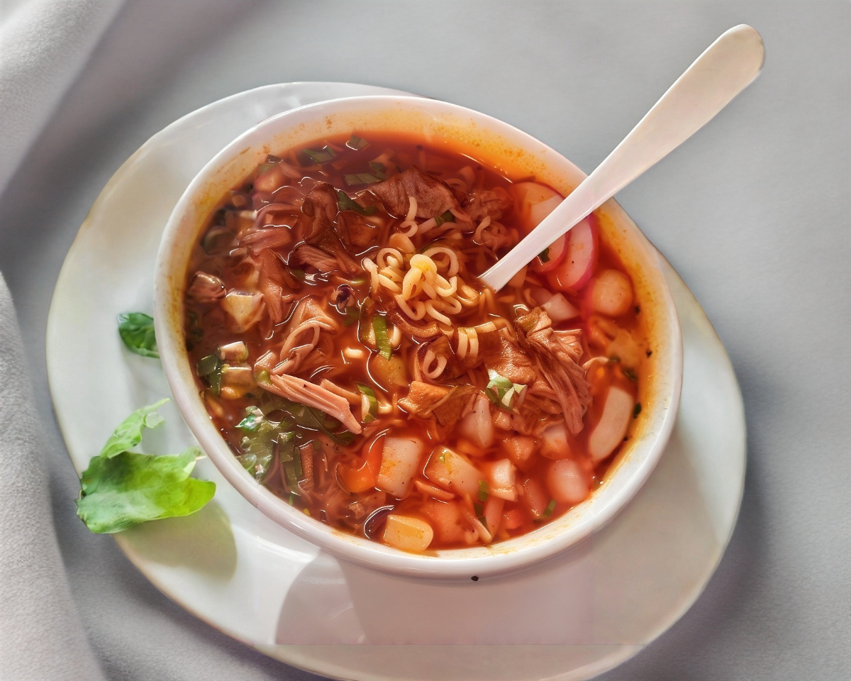 Sopa instantánea sabor birria con consomé.