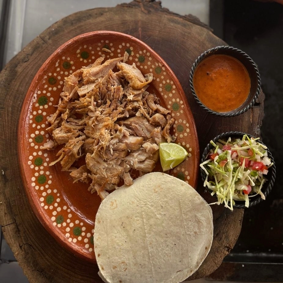 Un kilo de puro sabor. Carne de cerdo seleccionada, frita a la perfección. Acompañada con todo lo necesario para armar tus tacos al momento: salsas, verdura, limones y tortillas.