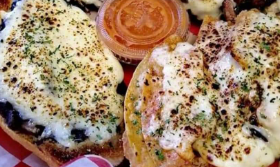 Jugosa carne angus al grill, con una cubierta de tocino, queso amarillo y costra de queso blanco, lechuga y jitomate, acompañada de papas gajo.