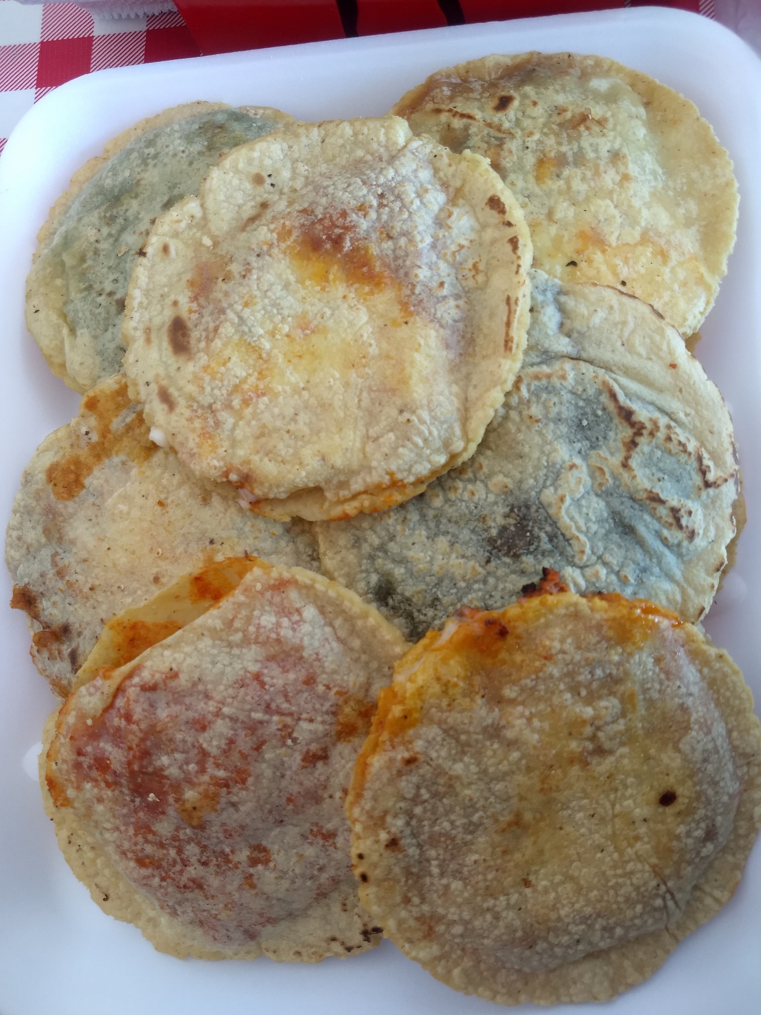 Quesadilla de maíz aproximadamente de 30 cm. con el guisado a elegir y queso asadero.