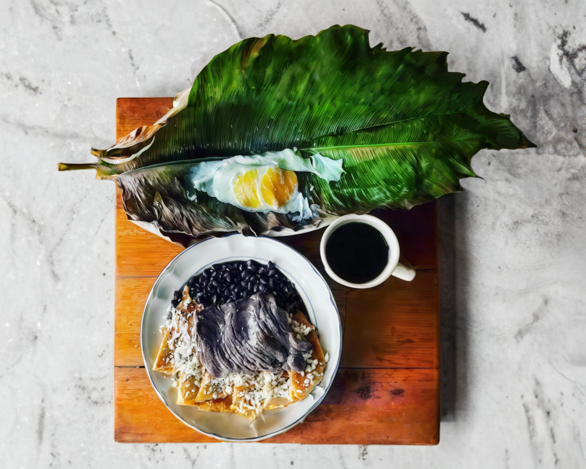 2 Huevos estrellados en hoja de plátano.