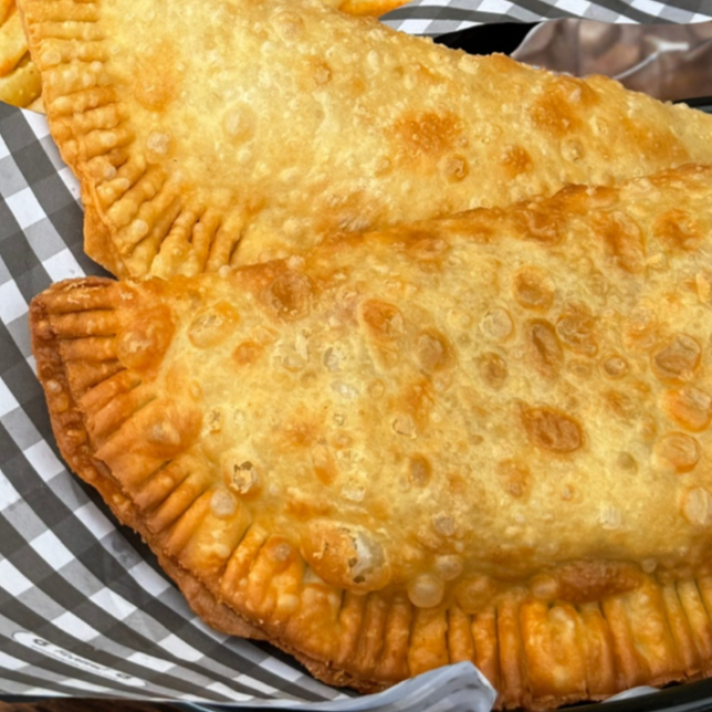 Escoge 2 Empanadas GIGANTES de cualquier especialidad mas tus papas a la francesa.