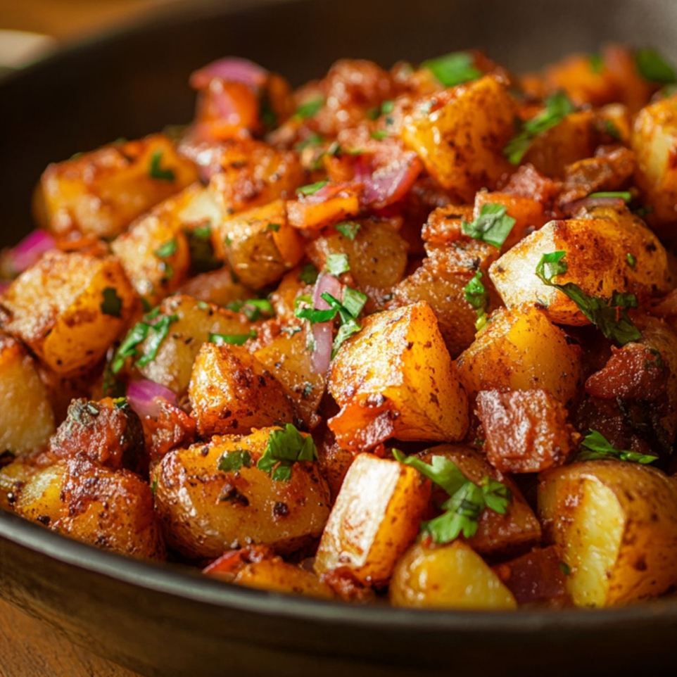 Deliciosas papas con aderezo de salsa brava, doraditas, con queso parmesano y especias.