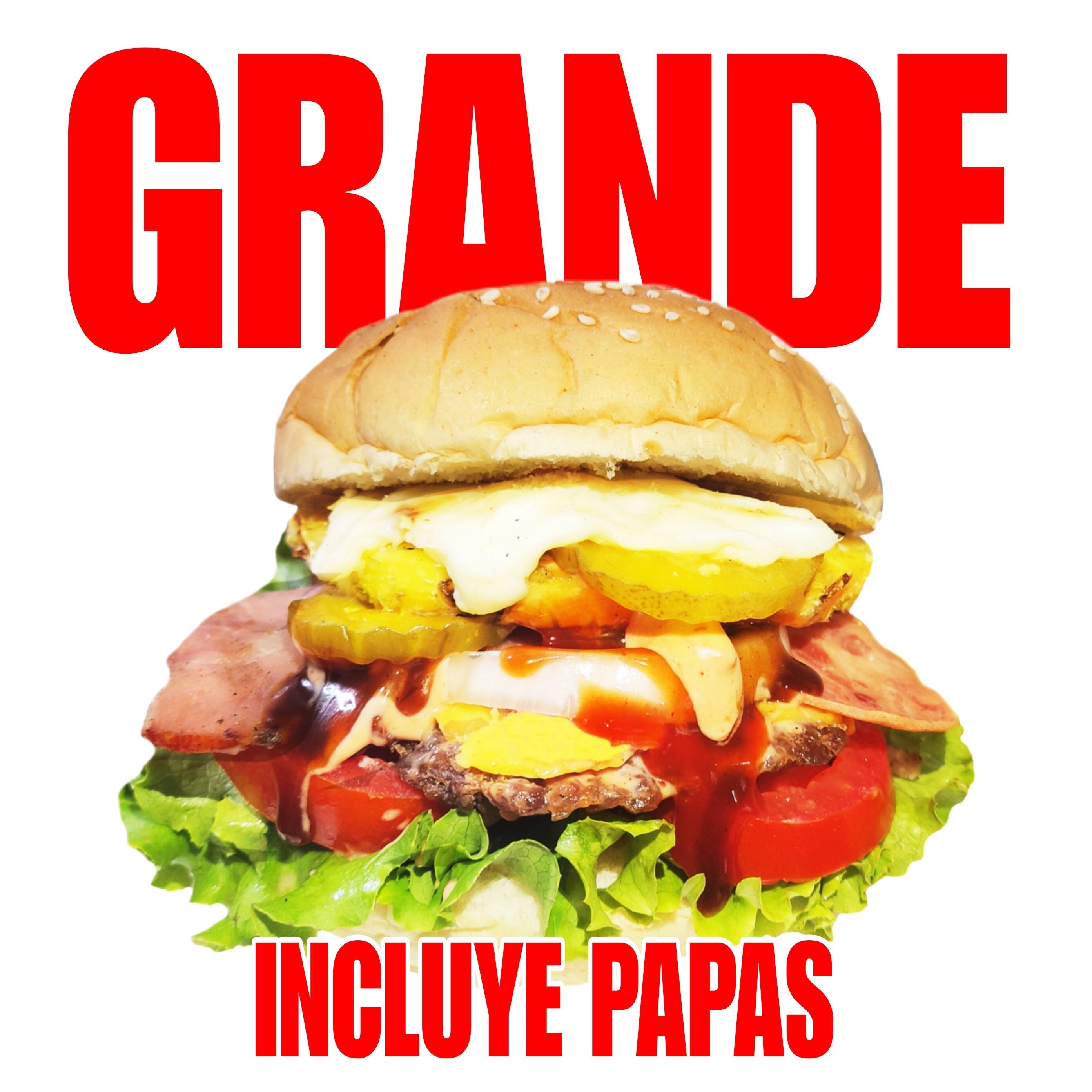Hamburguesa doble carne, doble tocino, doble piña, doble queso