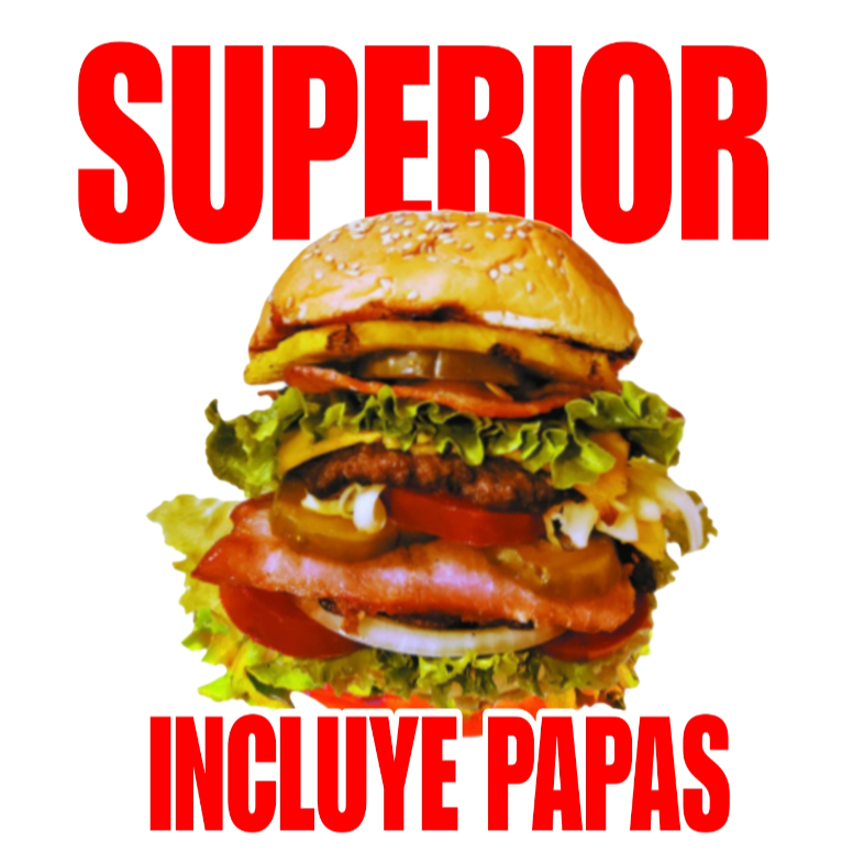 Pan brioche, carne de res envuelta en tocino queso asadero, queso amarillo, lechuga italia, jitomate y aderezos catsup y mayonesa especial
