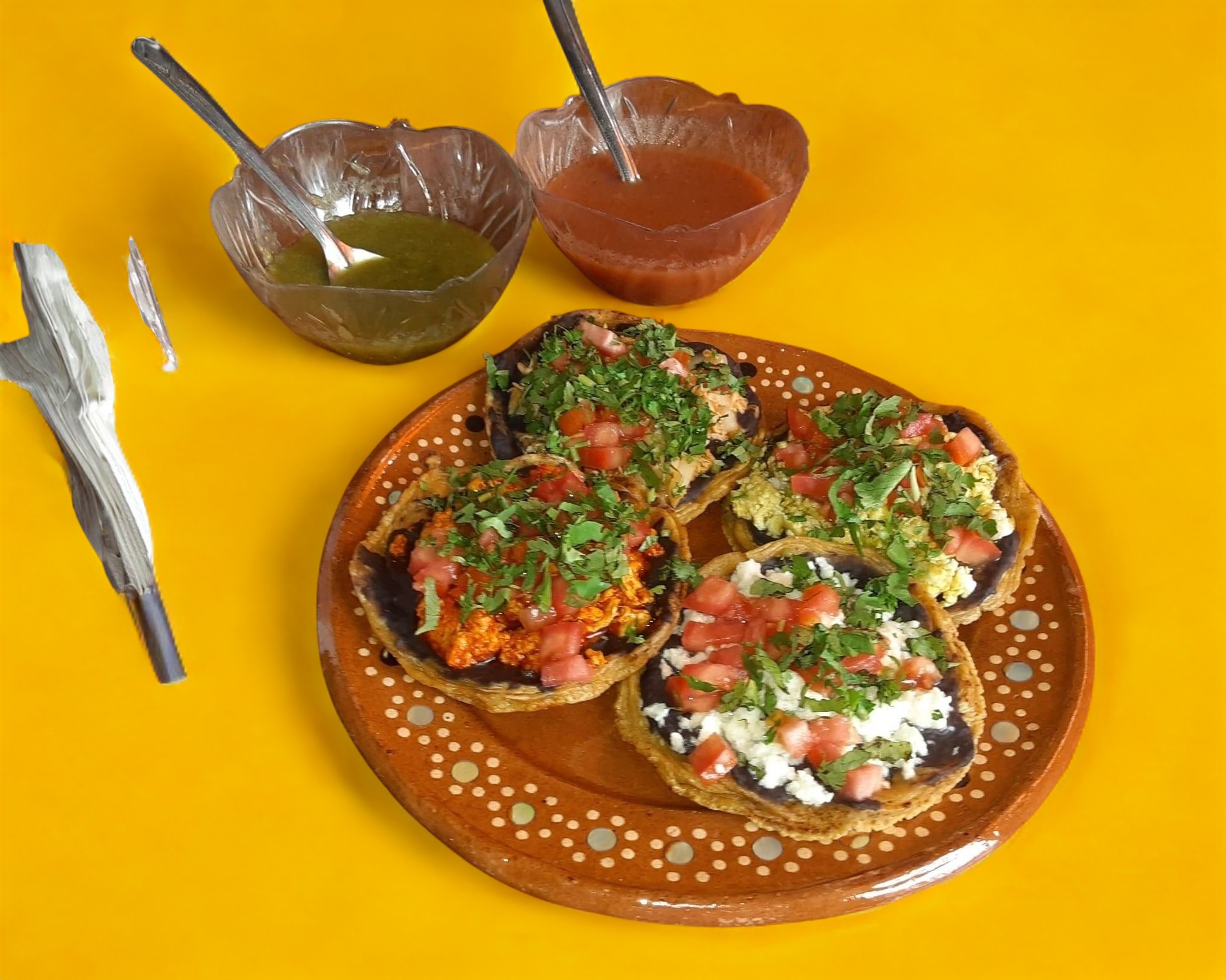 bace de maiz rellena de frijol negro queso jitomate cilantro y el guiso de tu elección
