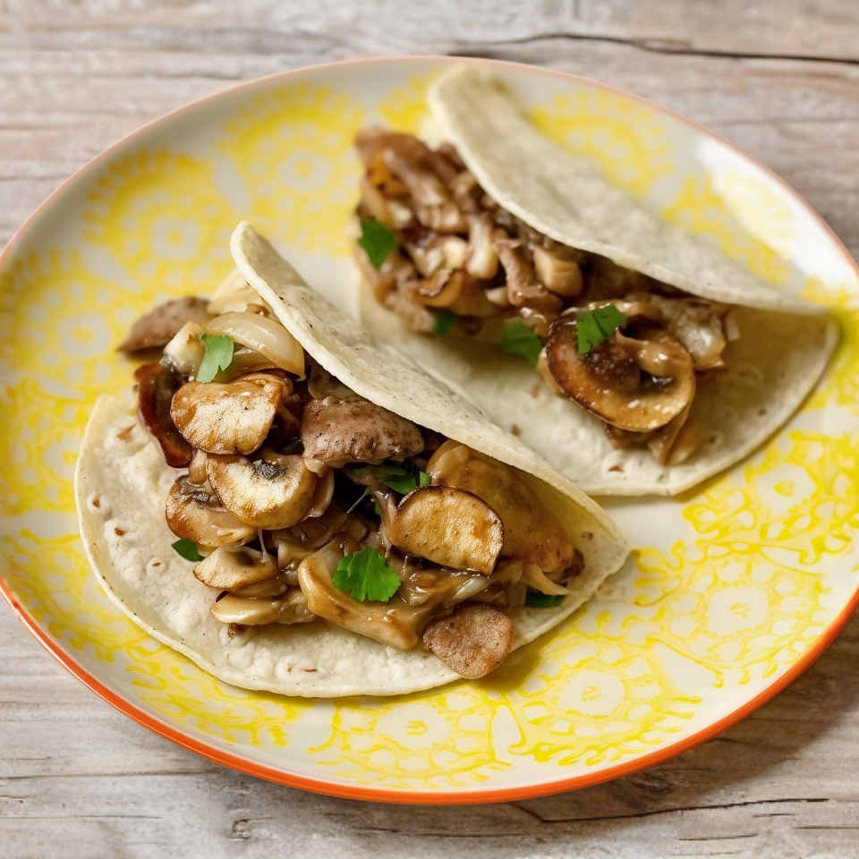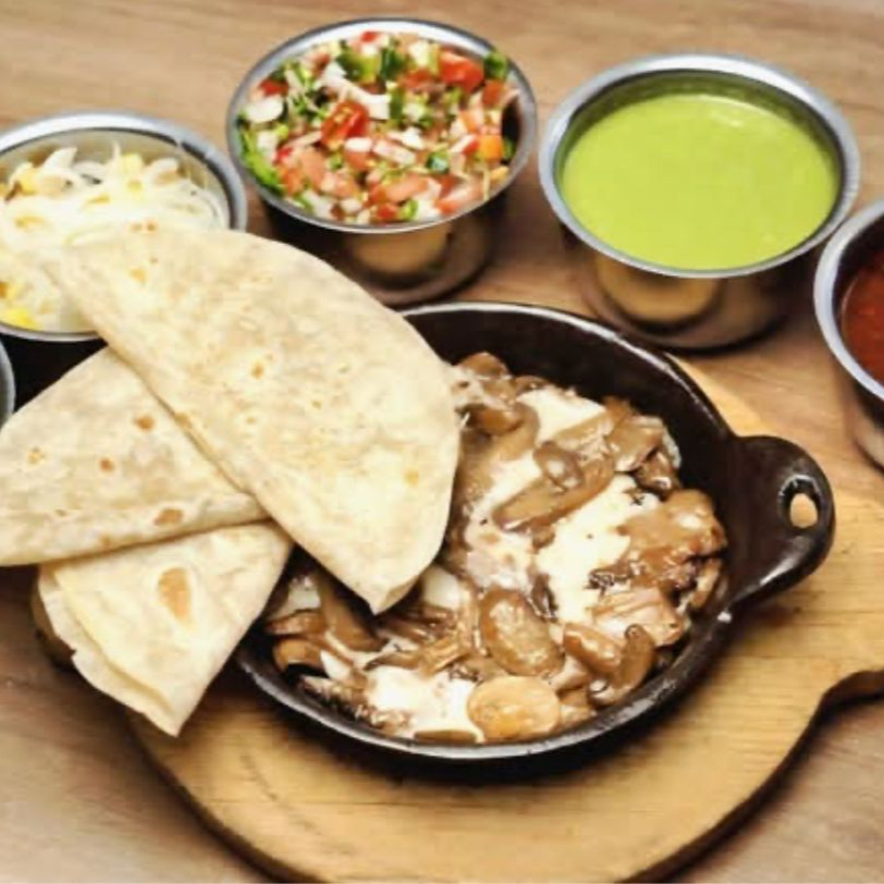 Doble tortilla de harina rellena de queso y deliciosos champiñones.