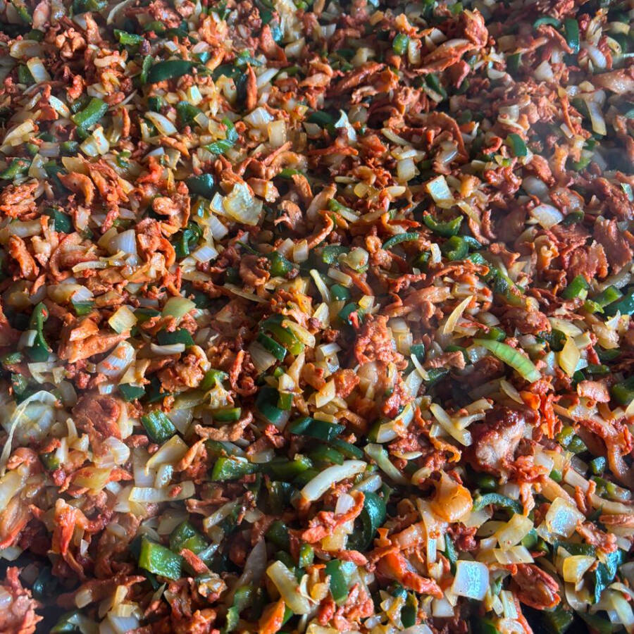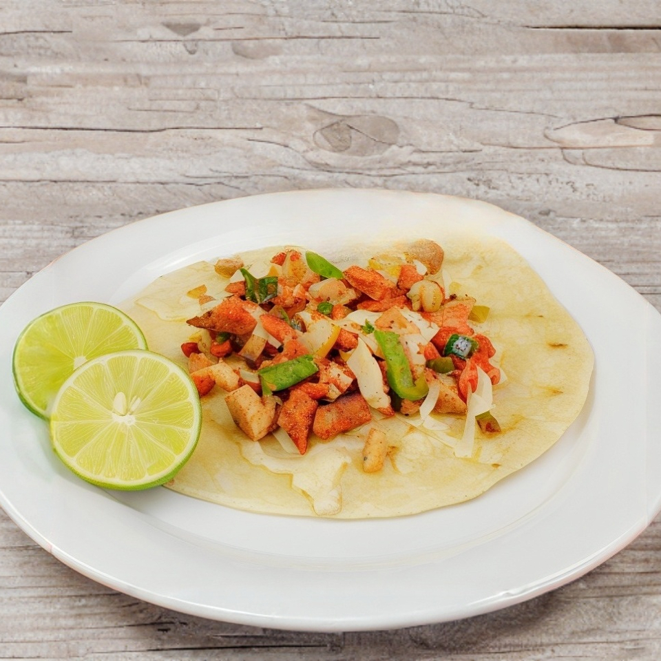 Doble tortilla de harina rellena de queso y deliciosa carne de pastor.