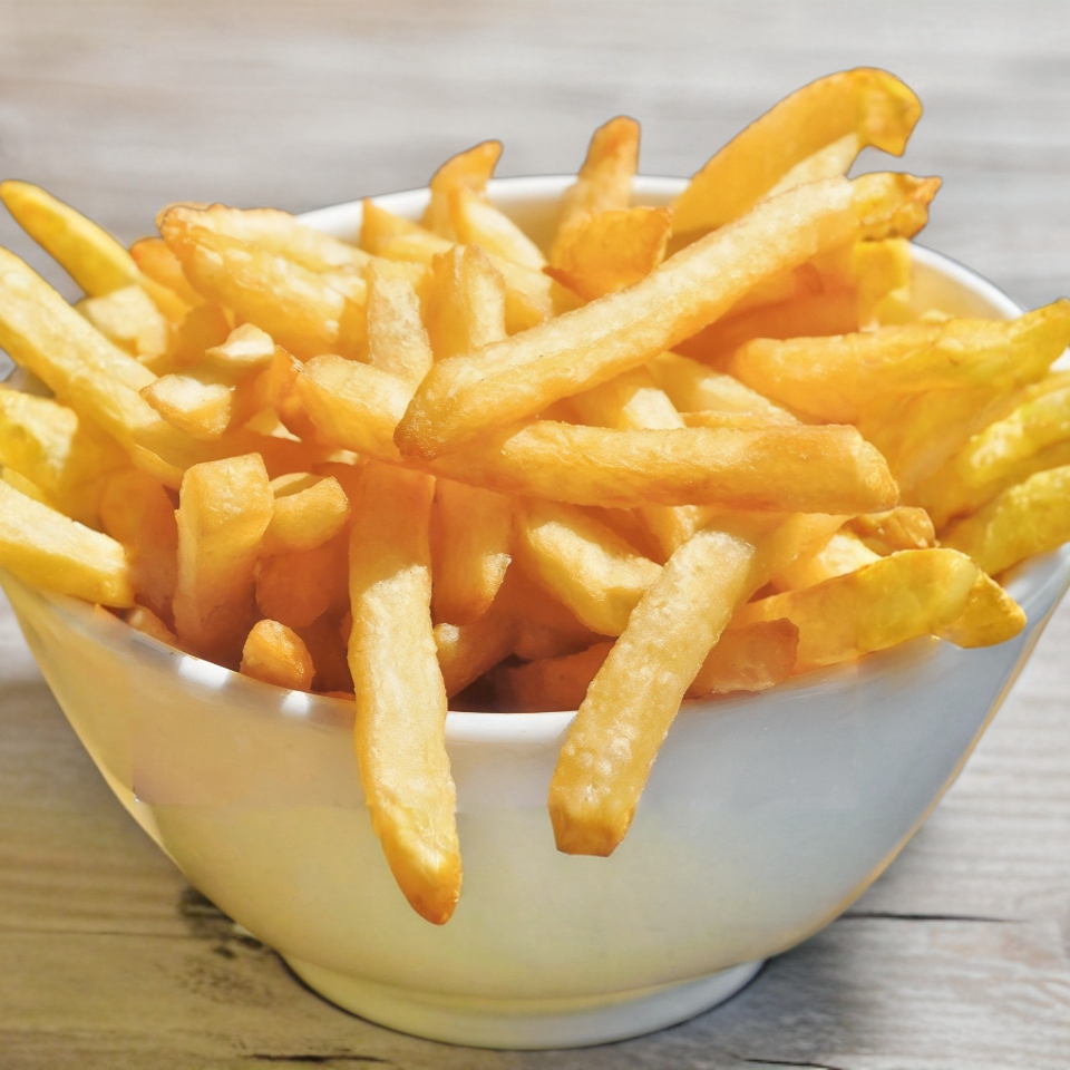 Papas super crujientes y calientitas, aproximadamente 200 g.