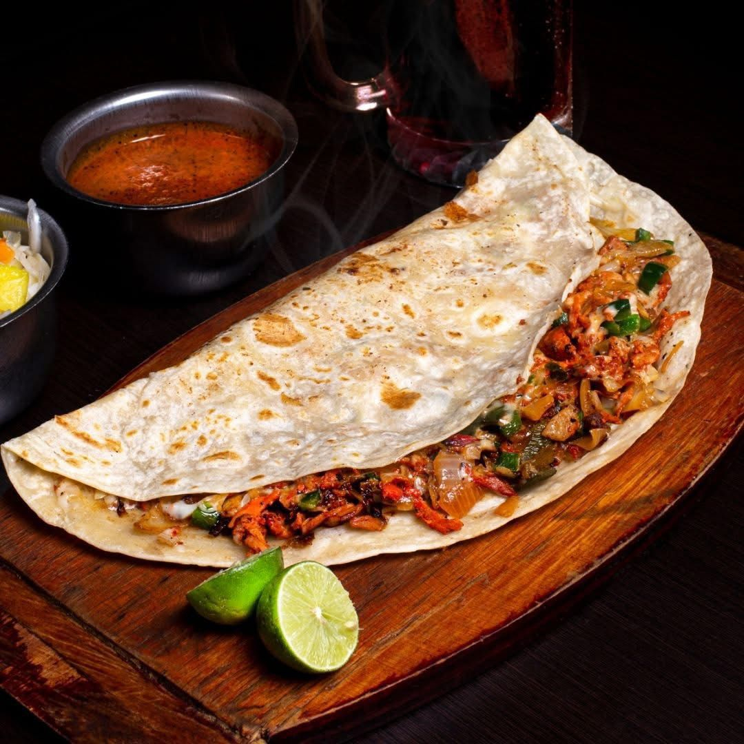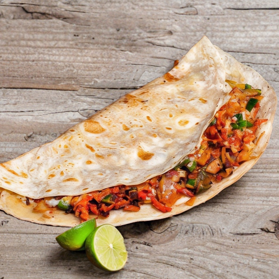 Doble tortilla de harina rellena de queso y deliciosa carne de chorizo.