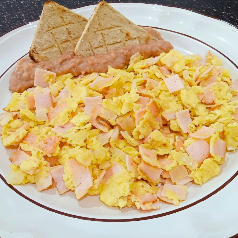 Huevos con Jamón y frijoles