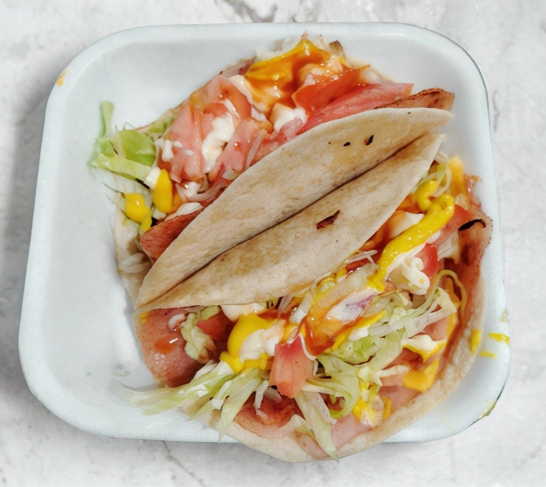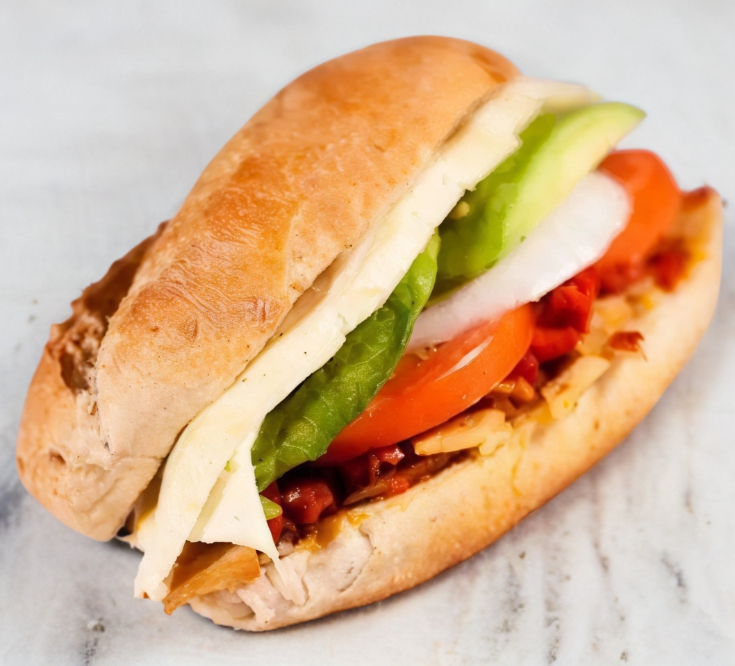 Pan, Aderezos, salchicha, jitomate, cebolla, queso asadero, tocino