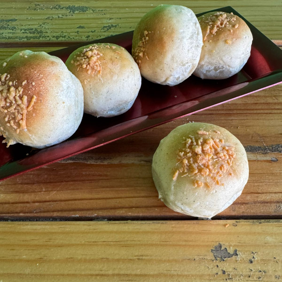 Pan de masa madre con ajo rostizado y relleno de queso crema. Por unidad.