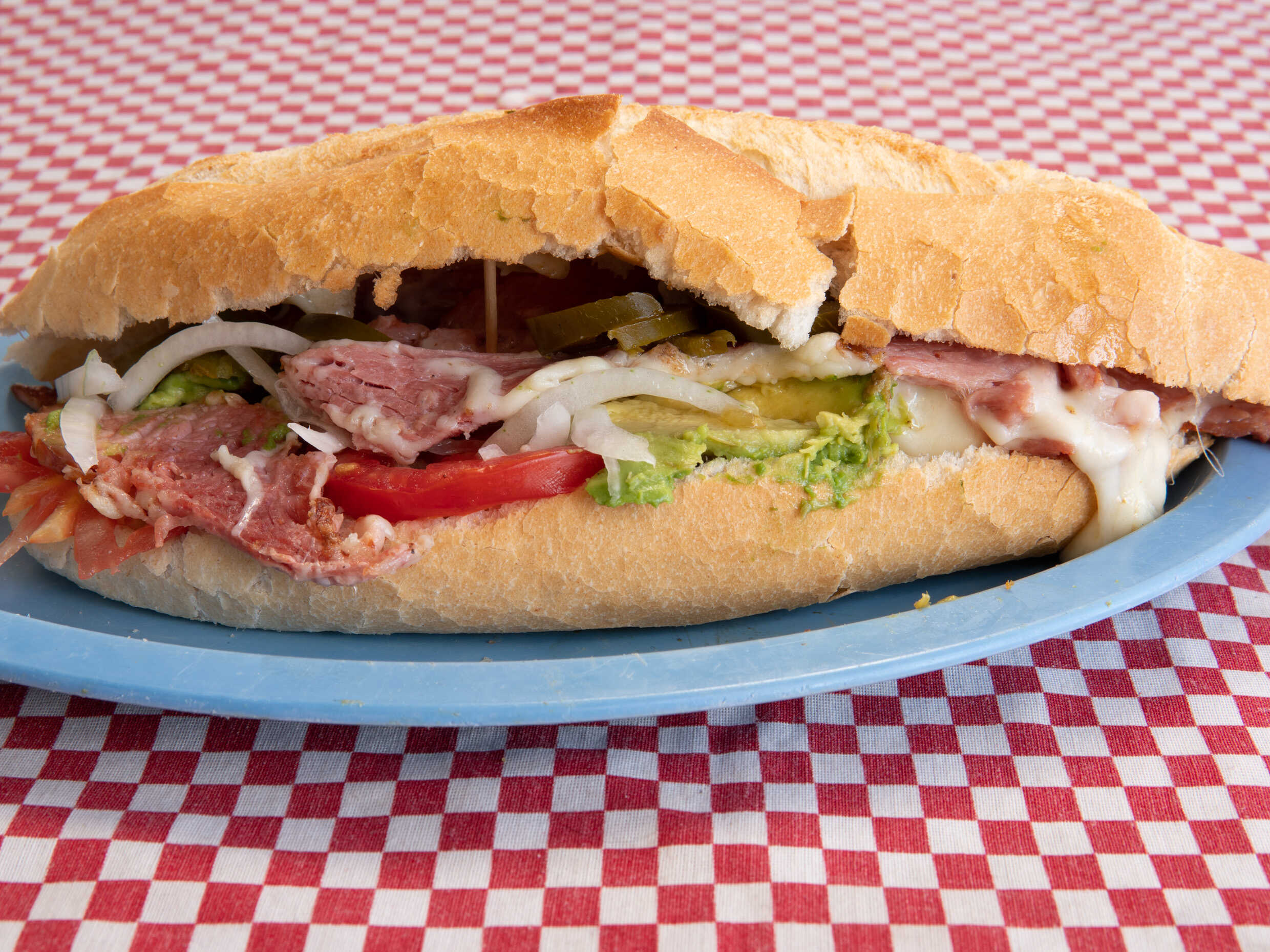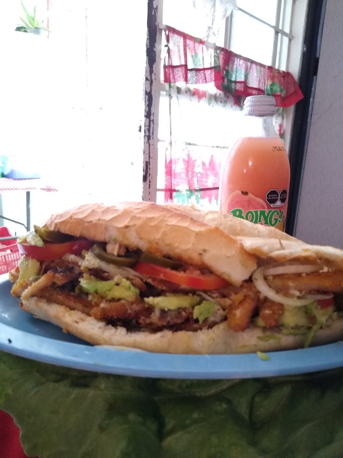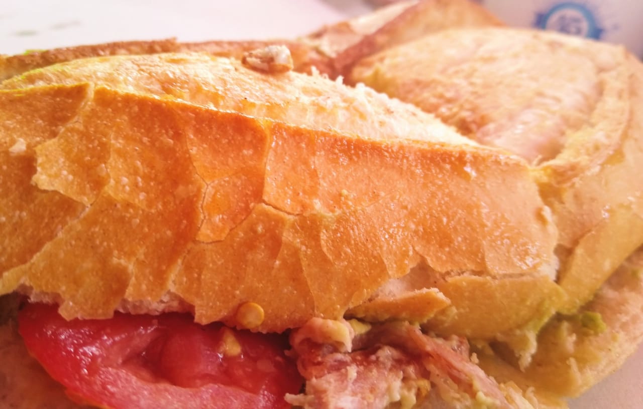 Bolillo de 25 cm, Exquisito Jamón de Pavo con Pierna Ahumada y queso asadero, mayonesa, cebolla, jitomate, aguacate,con opción de chile vinagre, salsa de chipotle, chile toreados.