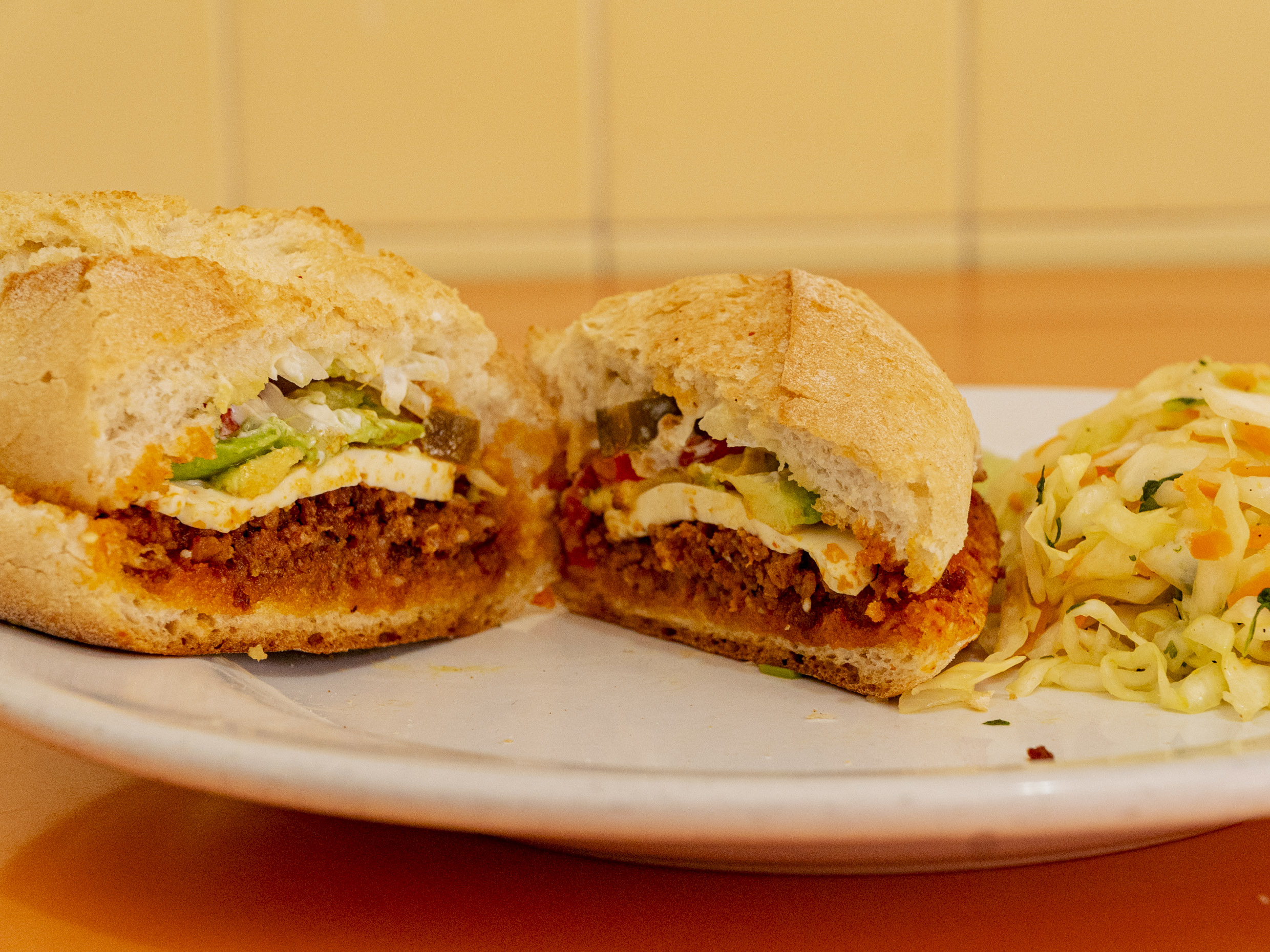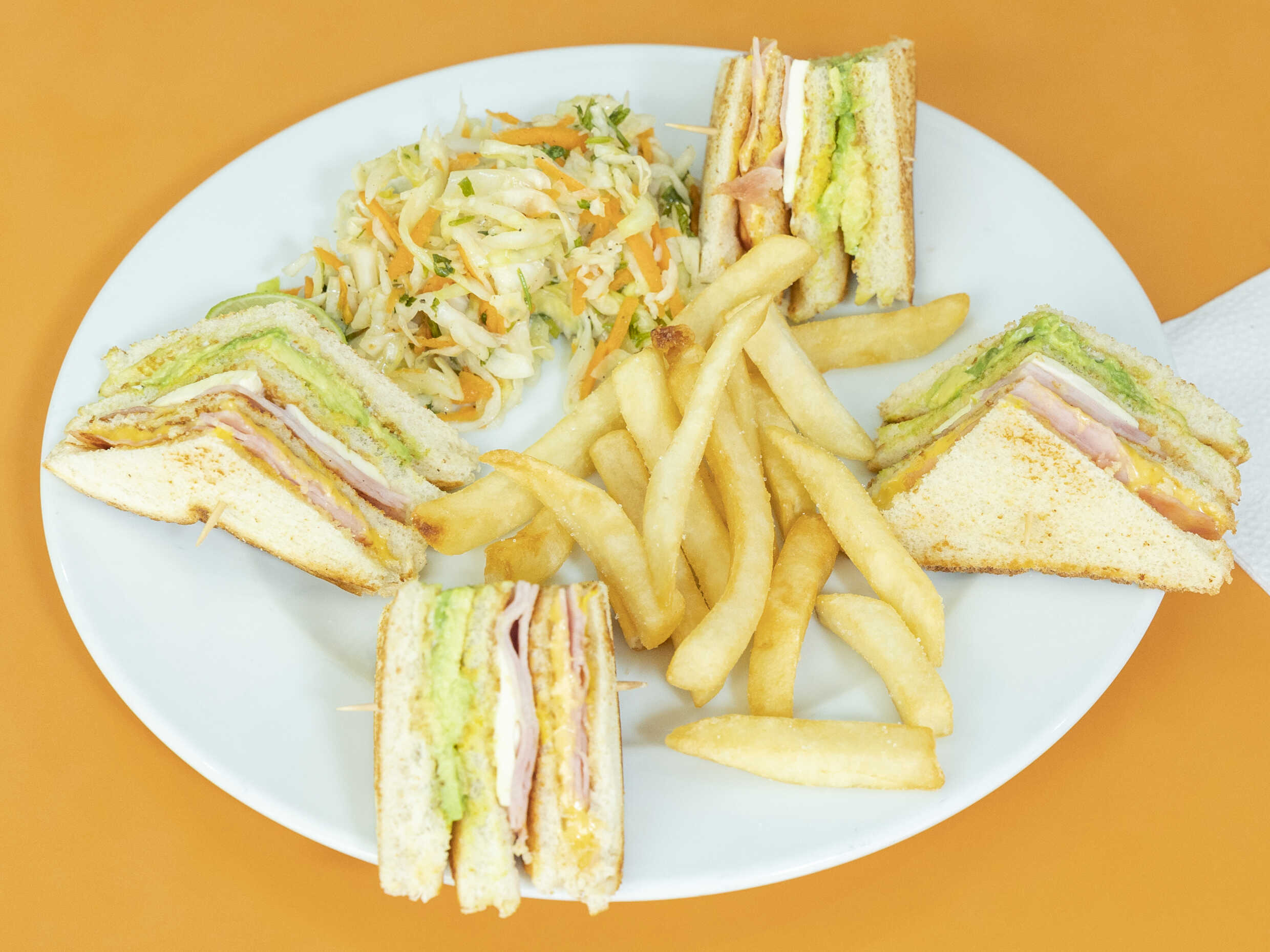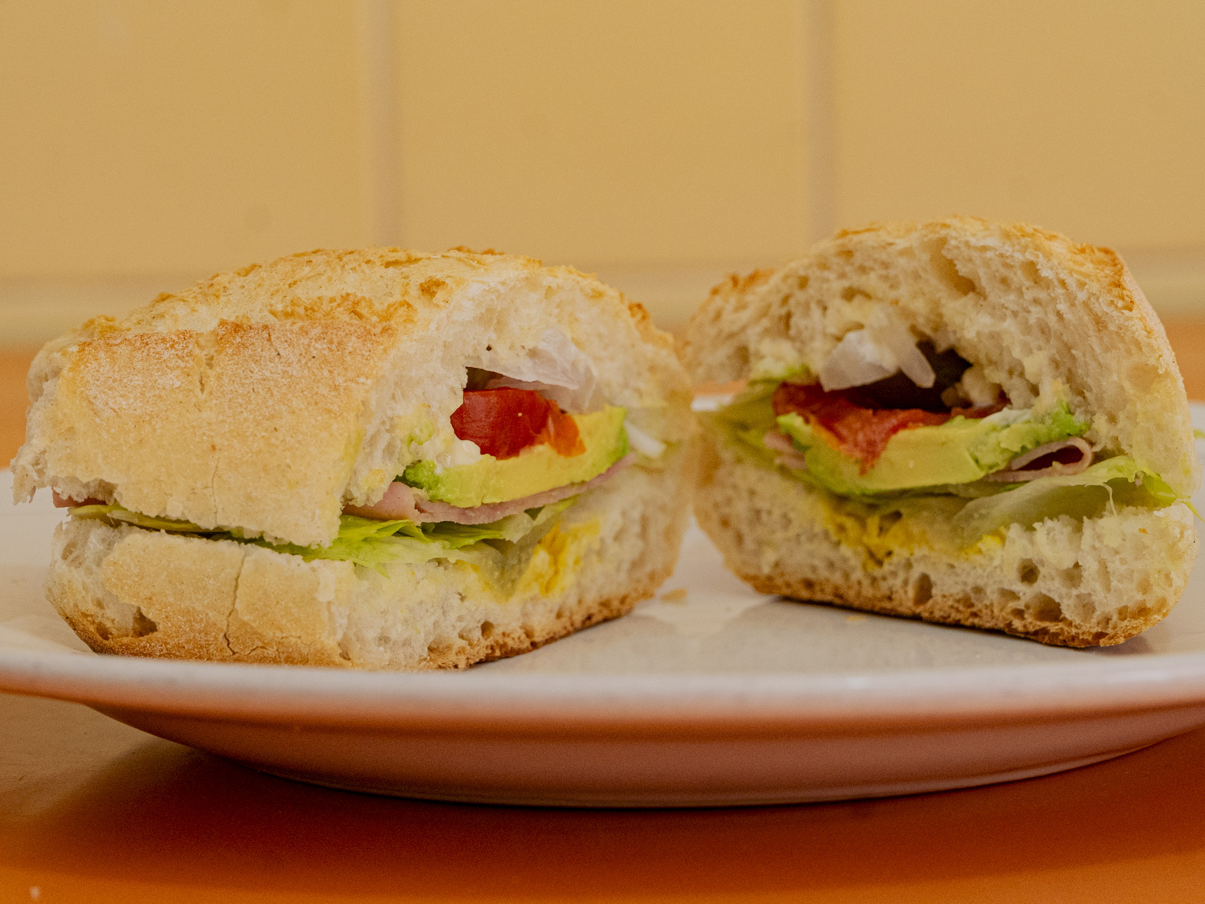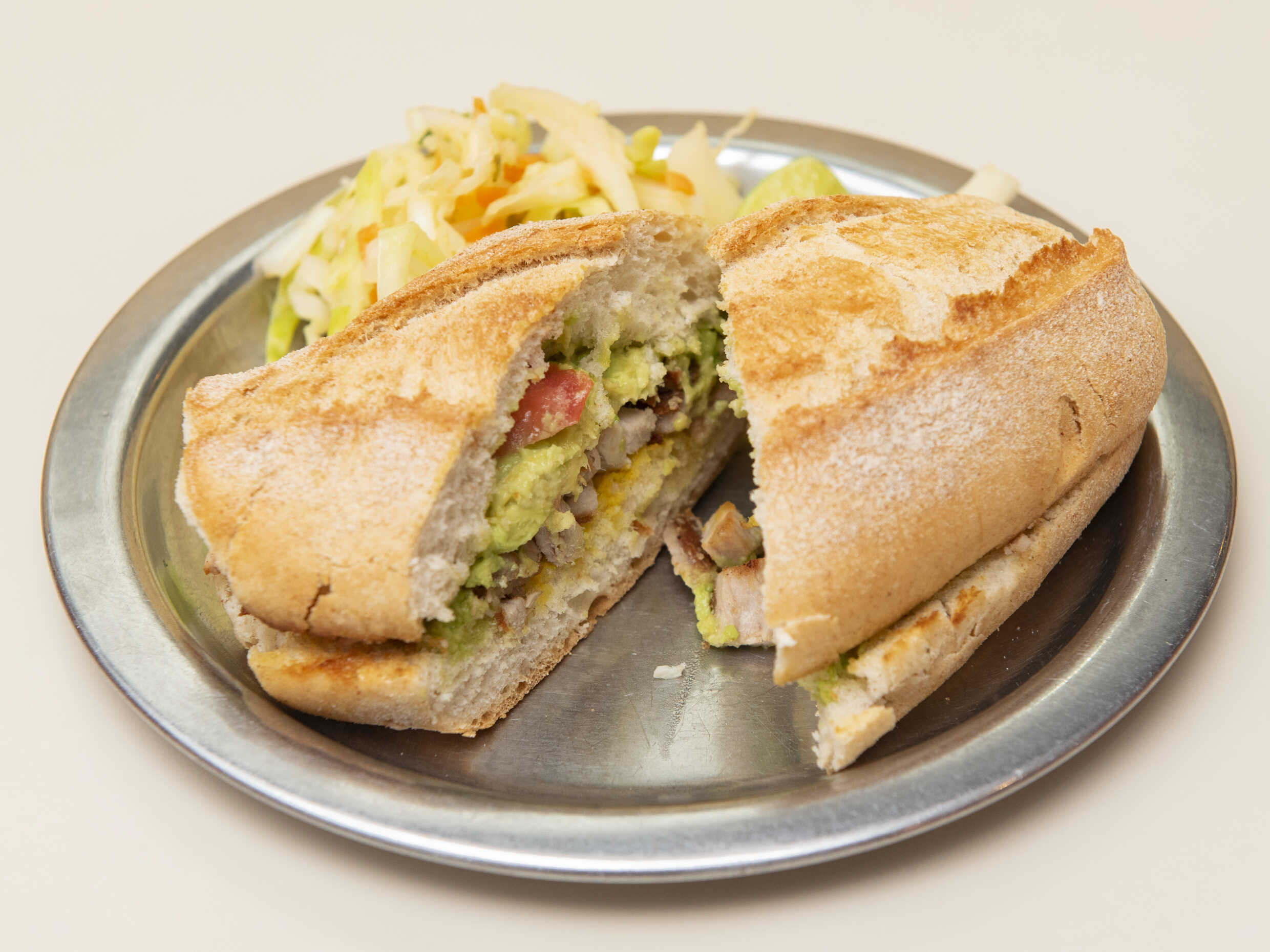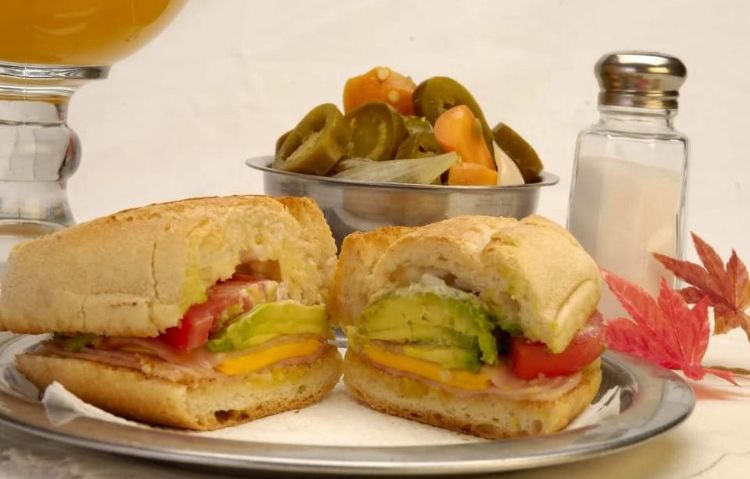 Jamón, aguacate, jitomate, jalapeño, cebolla, mayonesa y mostaza.