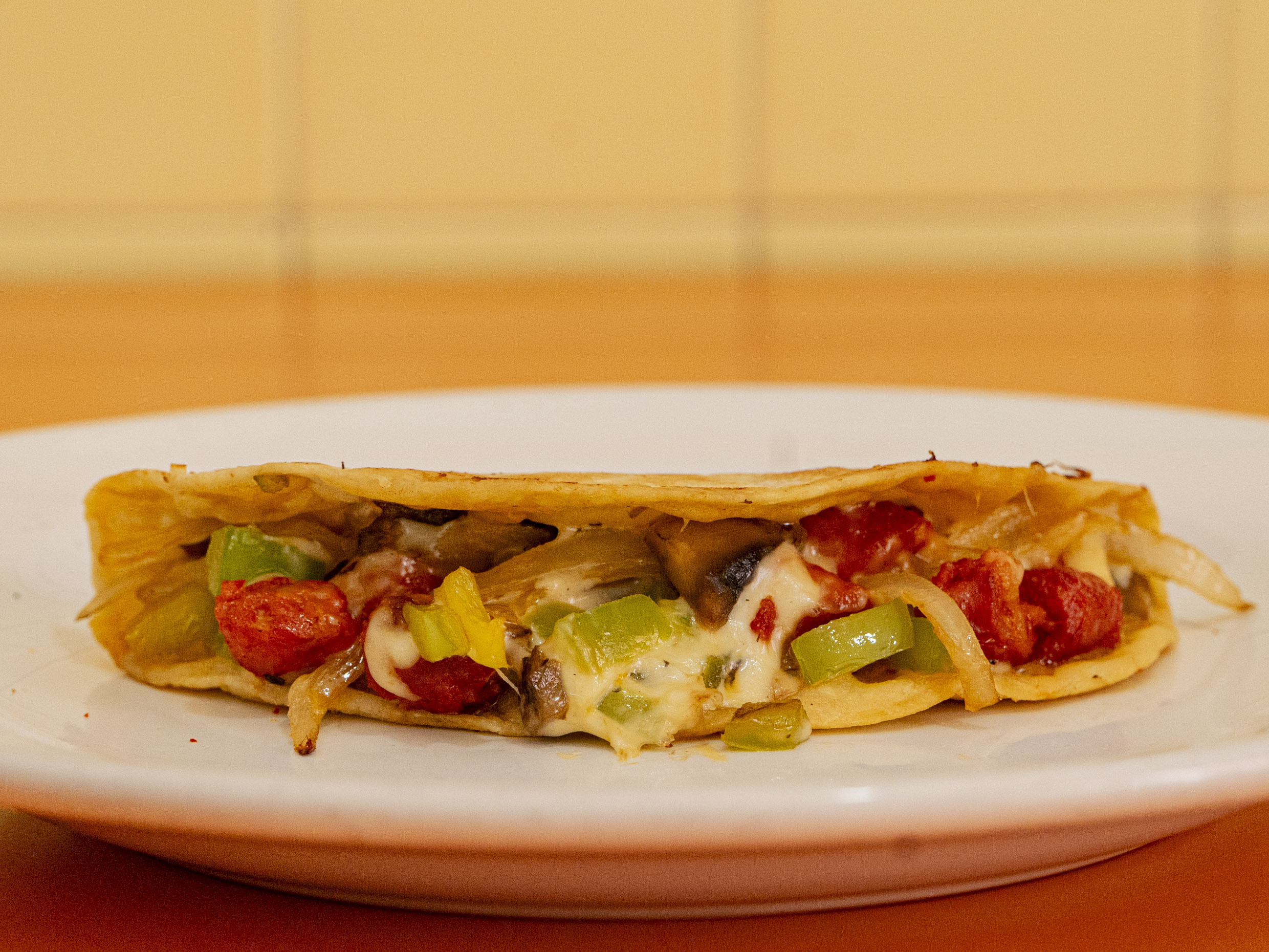 Champiñones, cebolla, pimiento, queso y arrachera.